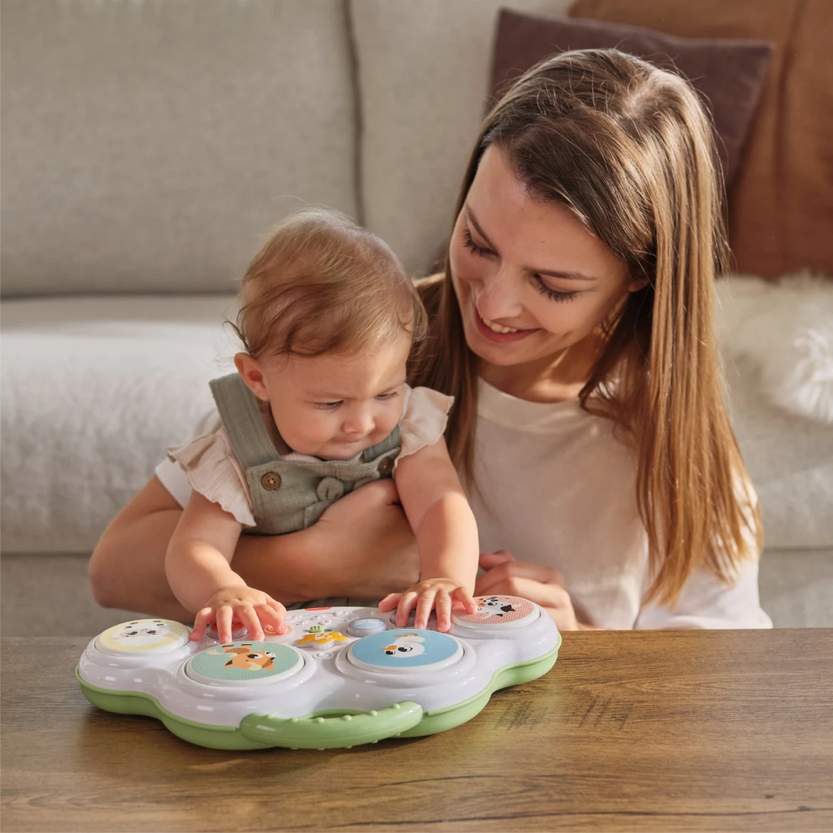 Skvele sa hodí aj na hru na brušku – pomáha predlžovať dobu hrania na brušku, čo podporuje posilňovanie a prípravu na ďalšie motorické míľniky. Zároveň je to ideálna hračka pre spoločné chvíle rodičov s dieťaťom – môžete spolu napodobňovať zvuky, skúšať rytmy a pomenovávať zvieratká.