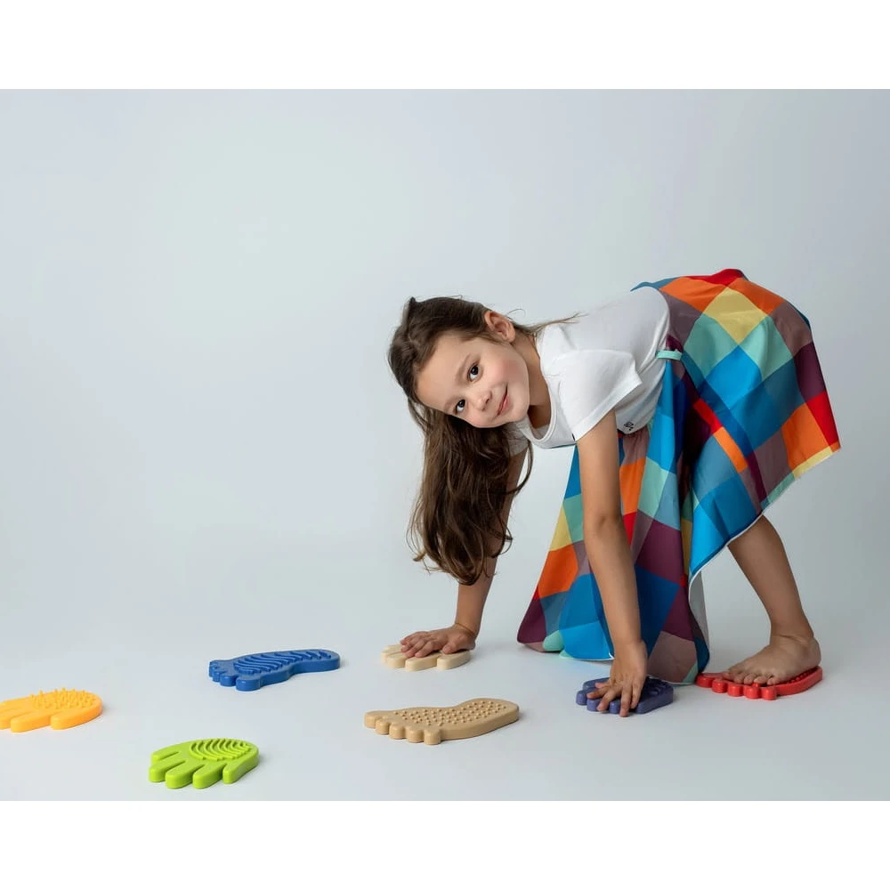 Senzorický chodník Sensorky je unikátna sada skladajúca sa z 8 prvkov: 4 nôh a 4 rúk, z ktorých každý má inú senzorickú štruktúru. Sada obsahuje aj balíček kariet s aktivitami, ktoré inšpirujú k rôznym cvičeniam a aktívnej hre.