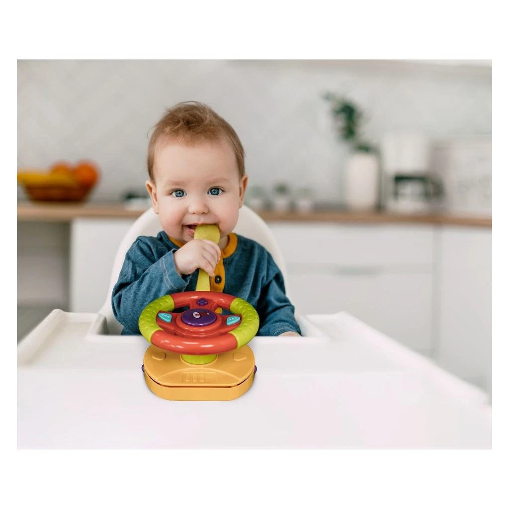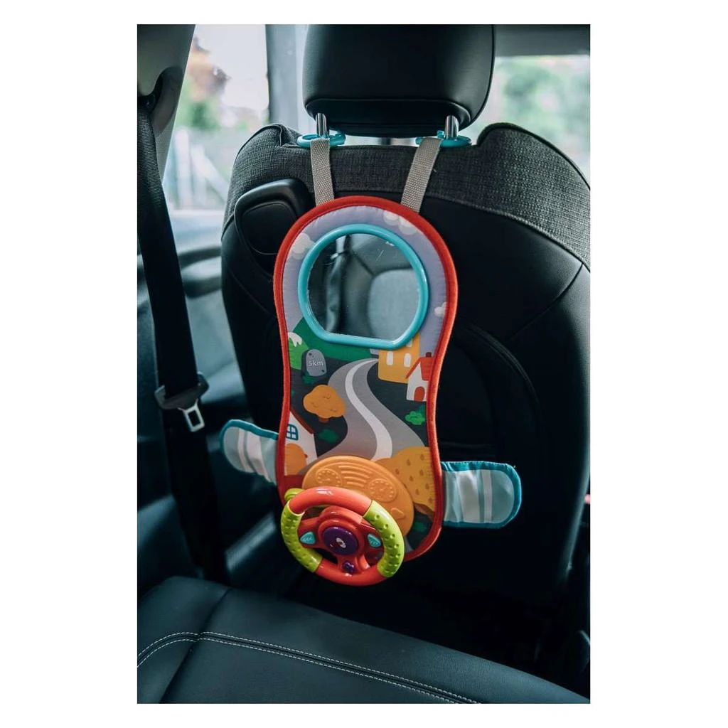 - obsahuje klipy a pracky, vďaka ktorým je možné volant pripevniť na autosedačku alebo kočík, čo robí riadenie ešte zábavnejším