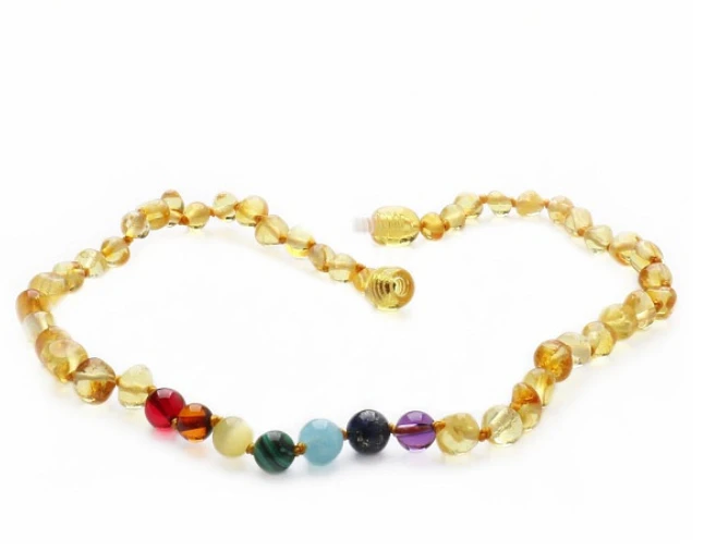 Jantárové korálky multicolor pre deti proti bolesti ametyst