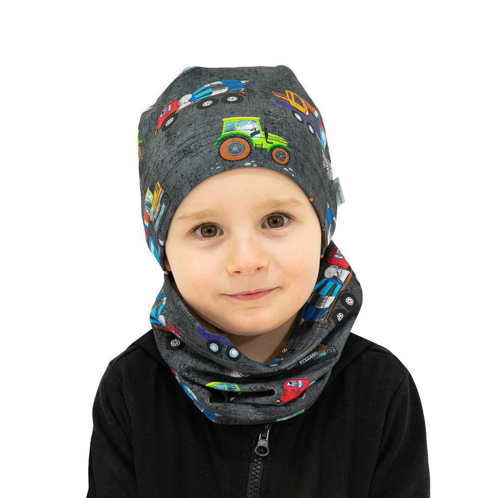 Bavlnená jarná chlapčenská čiapka Stavba, krásny dizajn, pružný materiál to je čiapka vyrobená so starostlivosťou k deťom v našej dielni v podhorí Orlických hôr.