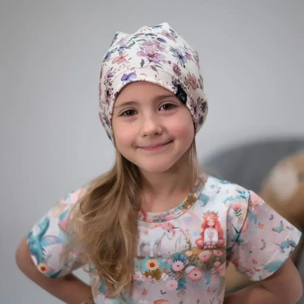 Jarná čiapka Violet flowers Cream - smotanová Esito