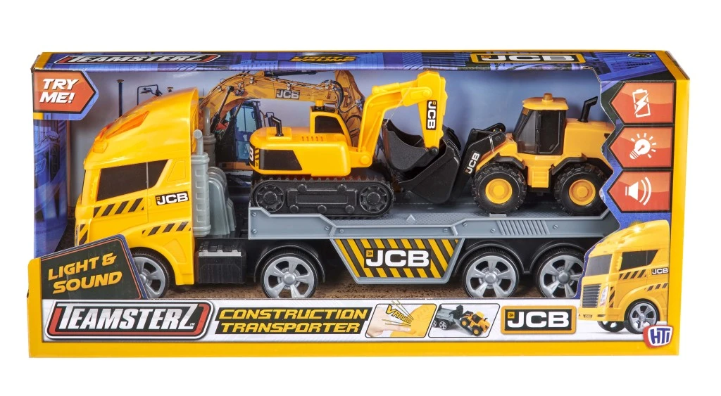 JCB transportné vozidlo je detailne prepracovaný model stavebného transportéra, ktorý prináša deťom autentický zážitok zo stavebných prác. Vozidlo je vyvedené v charakteristickej žltej farbe JCB, ktorá je doplnená čiernymi a šedými detailmi, čo mu dodáva realistický vzhľad. Transportér disponuje voľne pohyblivými kolesami, ktoré umožňujú ľahké posúvanie po rôznych povrchoch. Na prednej časti kabíny sú umiestnené blikajúce svetlá, ktoré spolu so zvukovými efektmi motora vytvárajú vernú atmosféru práce na stavbe.