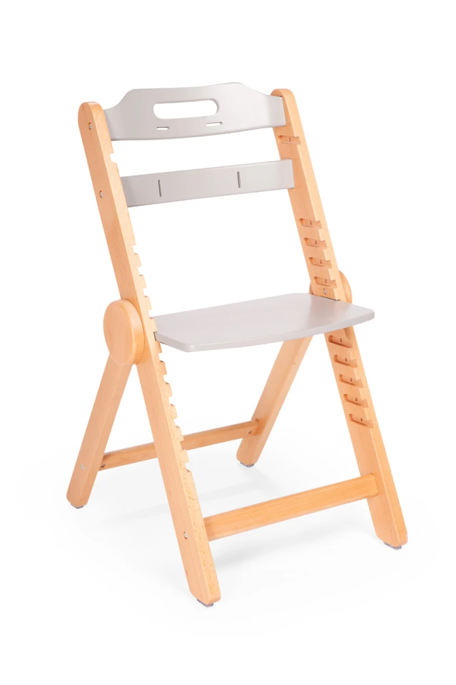 Stolička je vyrobená z buku a vyznačuje sa mimoriadnou odolnosťou a elegantným vzhľadom, vďaka prírodným vláknam a charakteristickej farbe bukového dreva. Jeho pevná konštrukcia zaisťuje stabilitu pri používaní, čo z neho robí nielen estetickú, ale aj praktickú voľbu pre rodičov.Tácka stoličky má jednoduchý systém demontáže, ktorý umožňuje rýchle prispôsobenie rôznym situáciám. Intuitívne vkladanie a vyberanie tácky a sedátka uľahčuje ľahký výber vhodného nastavenia podľa preferencií dieťaťa.