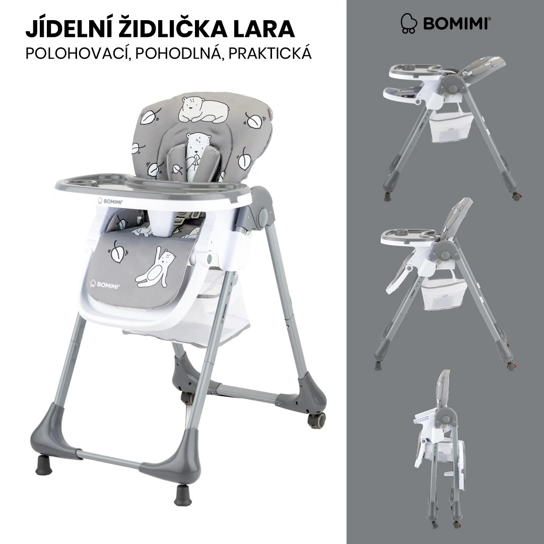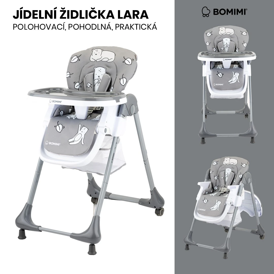 Jedálenská stolička Lara kombinuje funkčnosť, pohodlie a flexibilitu, takže je ideálnym pomocníkom pri kŕmení aj spoločnom stolovaní.