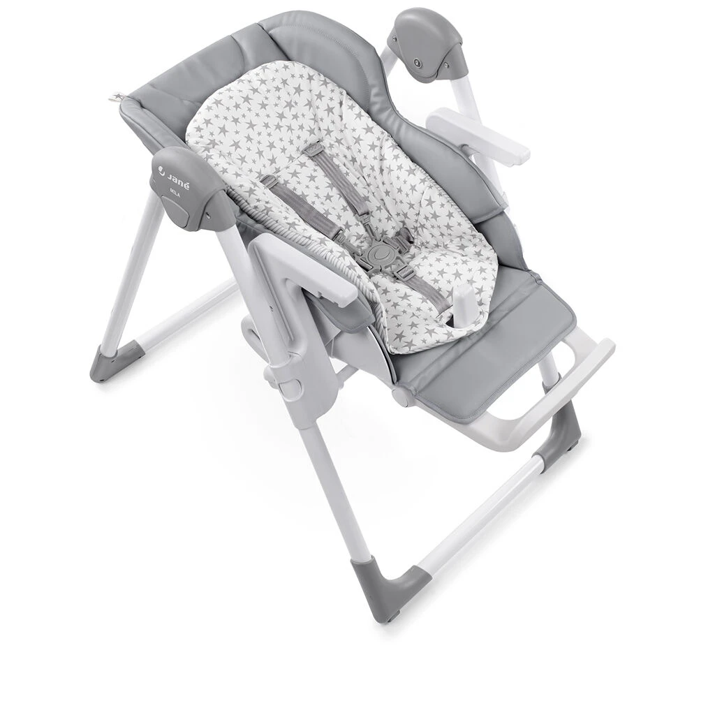 Detská jedálenská stolička Jané Mila kombinuje komfort pre bábätko a plnohodnotné sedenie pri stole pre batoľa až do 3 rokov. V prvých mesiacoch života slúži ako pohodlné lehátko pre bábätko, od cca 6 mesiacov sa jednoducho zmení na jedálenskú stoličku, aby sa dieťa mohlo zapojiť do spoločného stolovania.