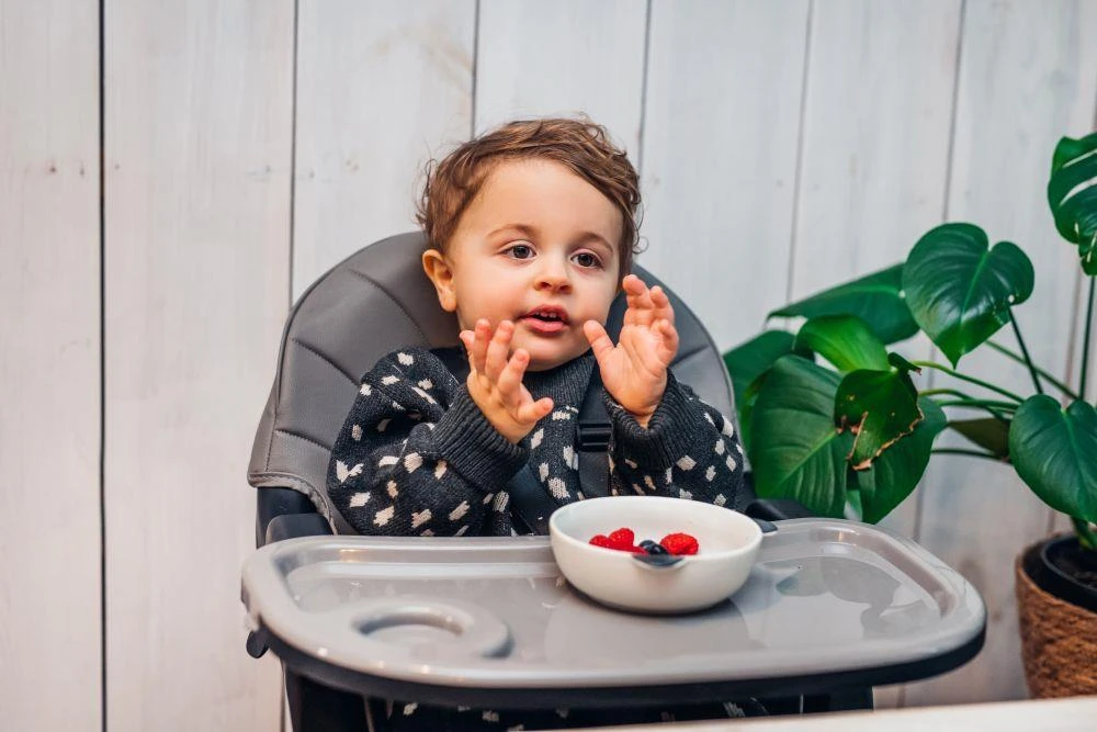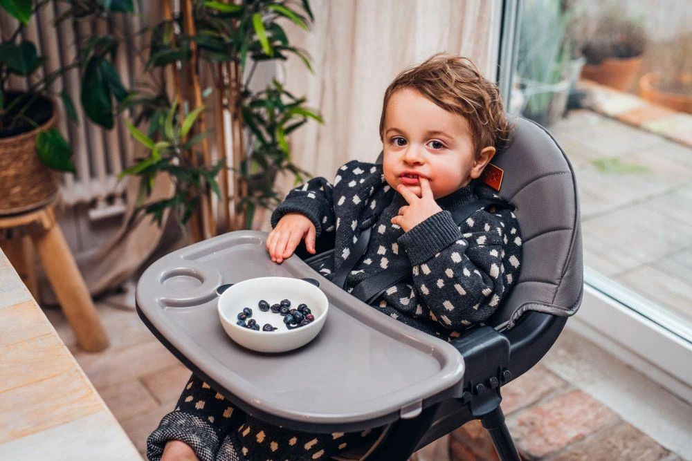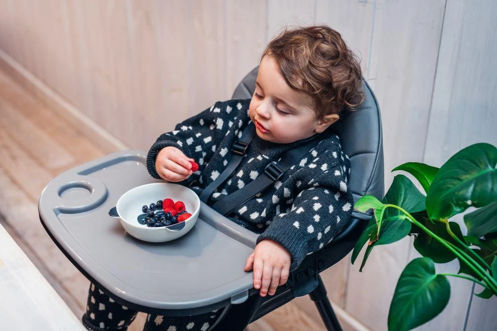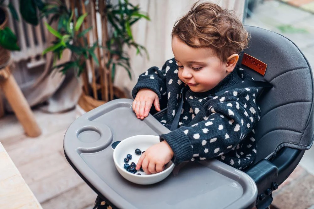 - Keď sa dieťa naučí sedieť, môže používať vysokú stoličku s podnosom na kŕmenie.