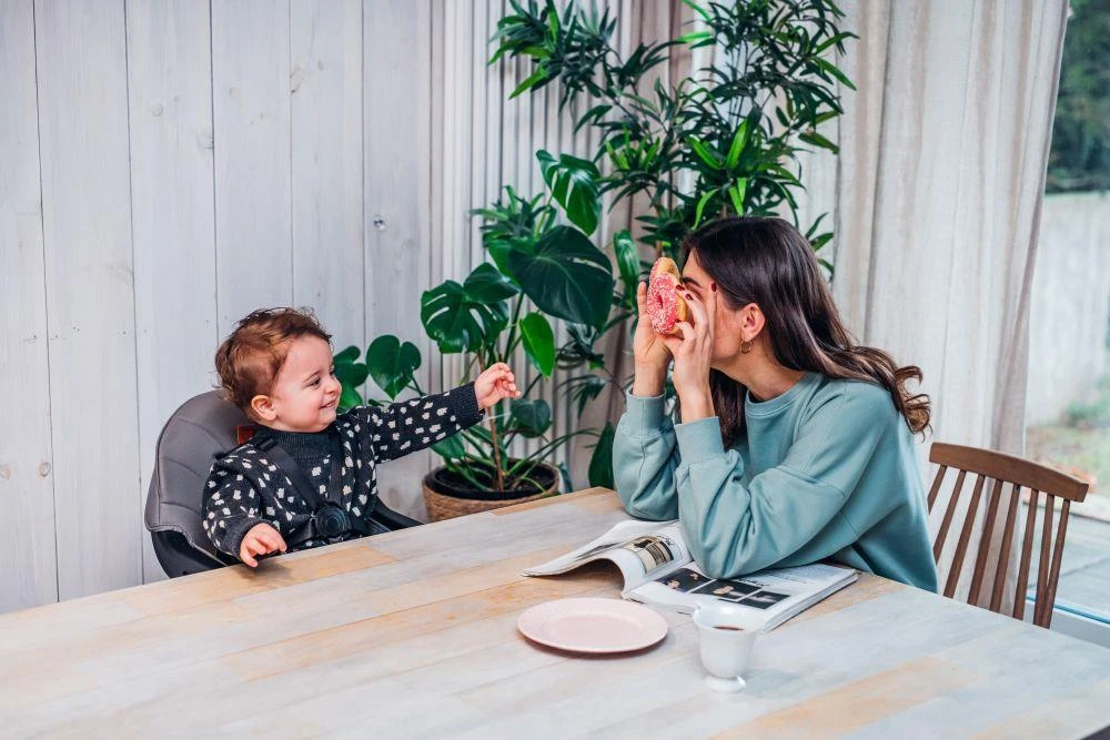 - Keď dieťa trochu povyrastie a bude chcieť jesť radšej s rodičmi, stačí podnos odstrániť, čo zaistí pohodlie pri rodinnom stole.