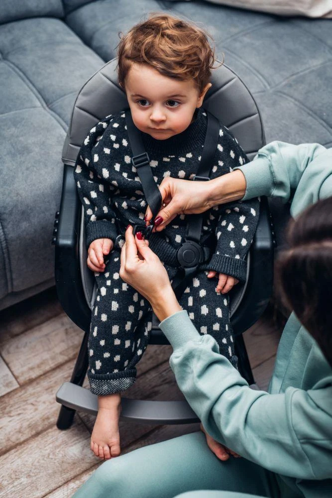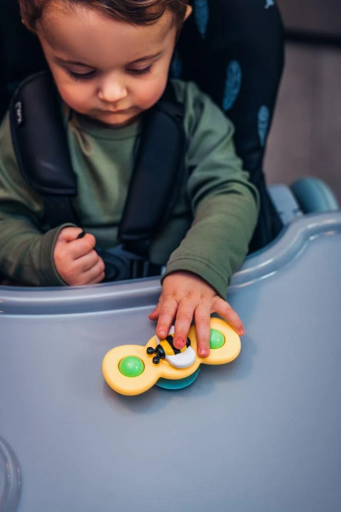 - Tácka je navyše nastaviteľná a môžete ju posunúť ďalej alebo bližšie k dieťaťu podľa jeho potrieb.