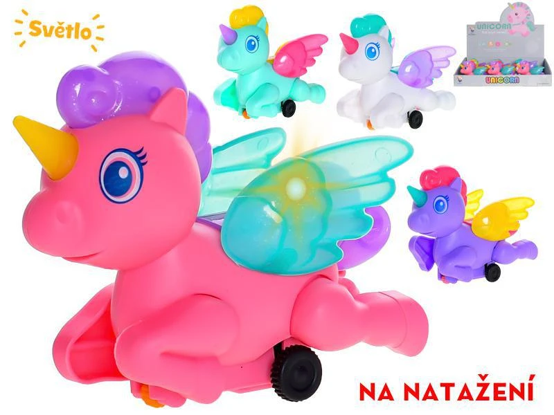 Jednorožec 13 cm jazdiaci na natiahnutie so svetlom