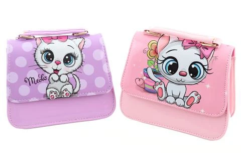 Farebná kabelka s motívom mačičky. Vnútri 1 veľká priehradka.