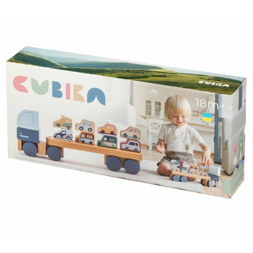 Kamión s autami - drevená skladačka 12 dielov Cubika