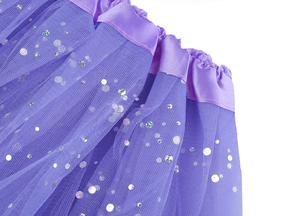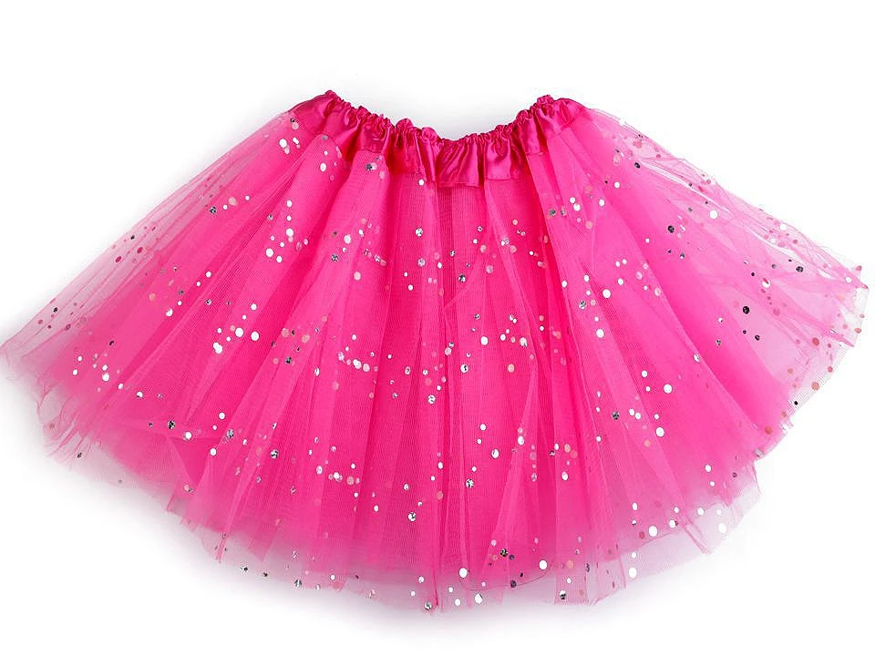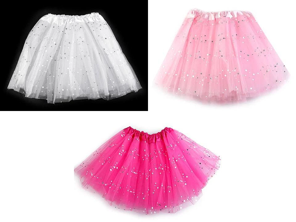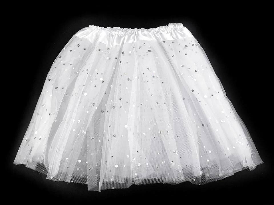 Skladá sa z troch tylových vrstiev. Horná vrstva je pokrytá trblietavými flitrami. Sukňa má v páse gumičku, aby sa mohla dobre prispôsobiť svojej nositeľke. Sukienku odporúčame pred použitím nechať vetrať voľne mimo vrecka.