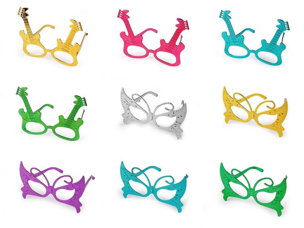 Pútavé a vtipné okuliare oživia každú akciu, či už sa jedná o narodeninovú oslavu, karneval, diskotéku, rozlúčku so slobodou a pod. Majú metalický lesk.