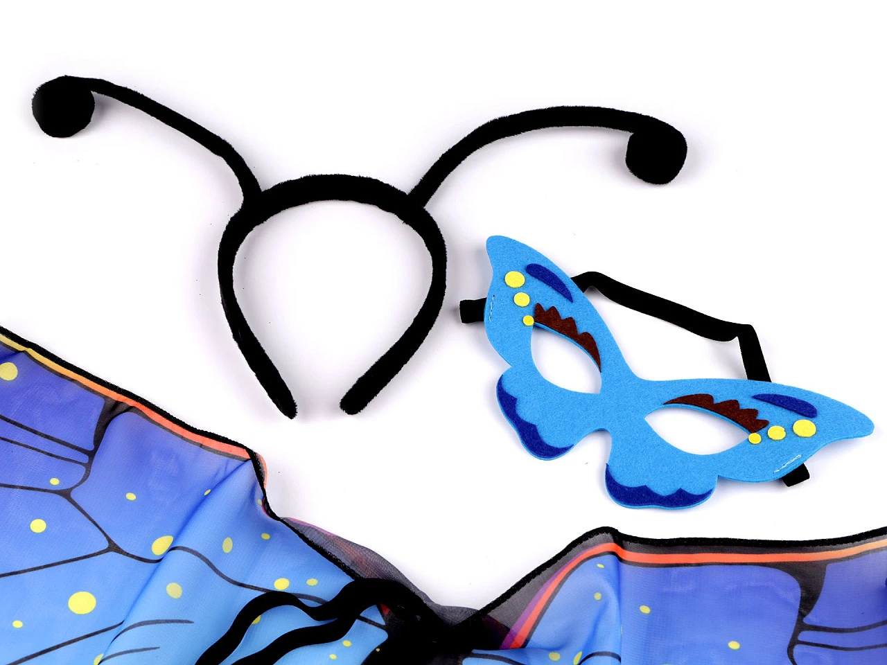Kostým motýľa premení vaše dieťa na akomkoľvek karnevale, oslave aj pri detských hrách. Skladá sa zo šifónových nevystužených krídiel, škrabošky a čelenky s tykadlami.