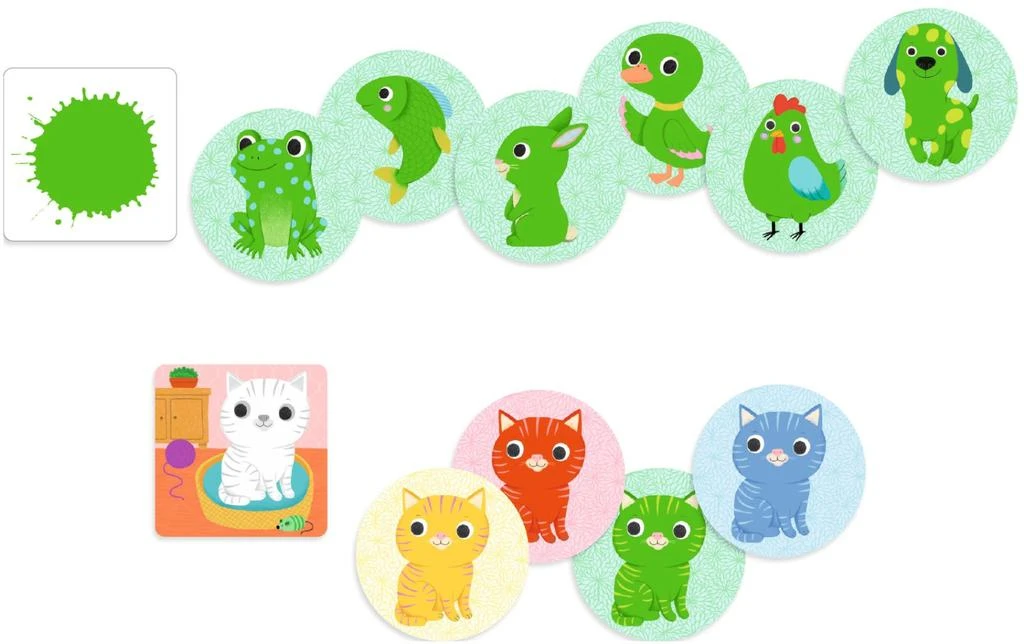 Zbavte sa svojich kariet podľa kritérií: farba alebo zviera. Prvá hra pre najmenších na postreh a schopnosti odlíšiť farby.