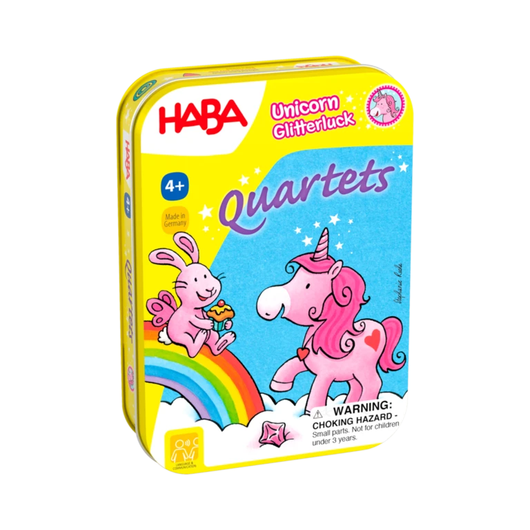 Rozsah hry: 32 kvartetových kariet, 6 oblačných máp, 8 oblačných kryštálov. Kartová hra z obľúbenej série jednorožec glitter luck od HABA.