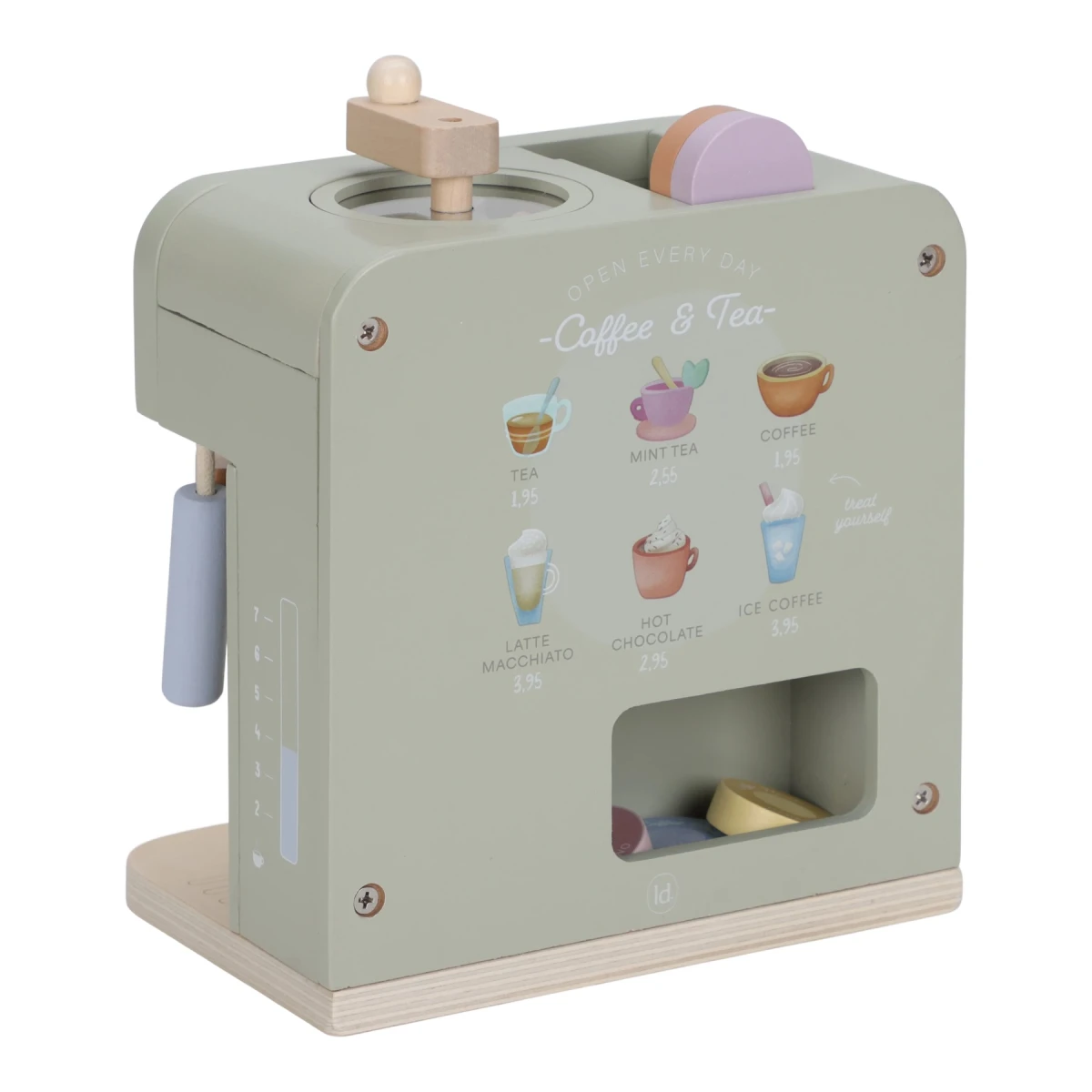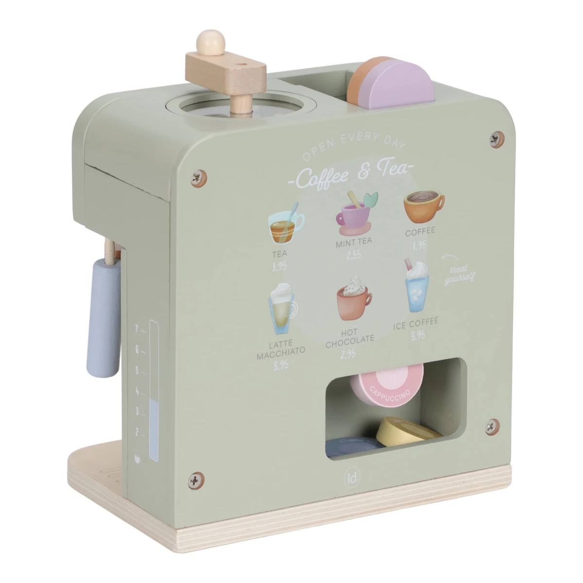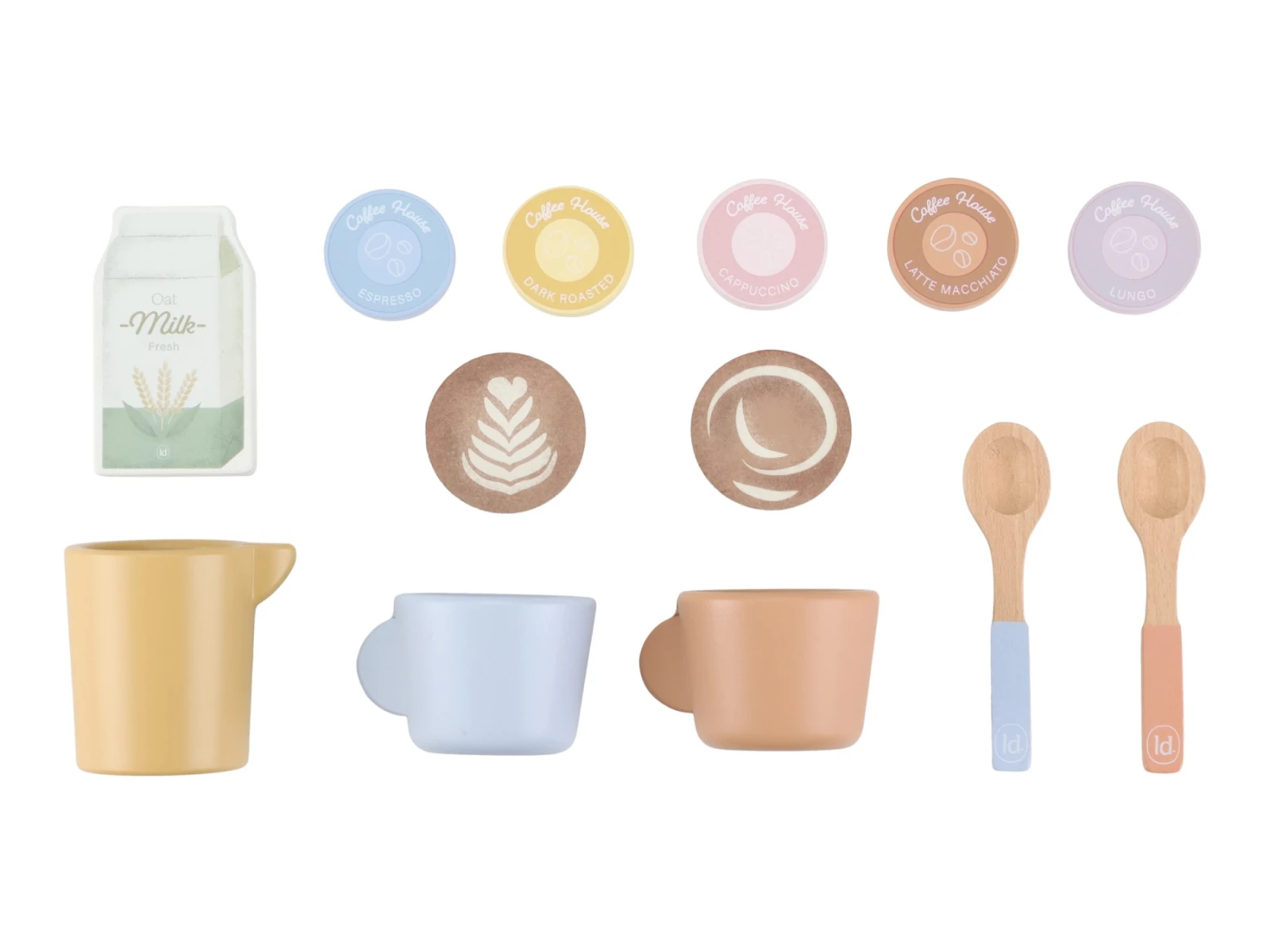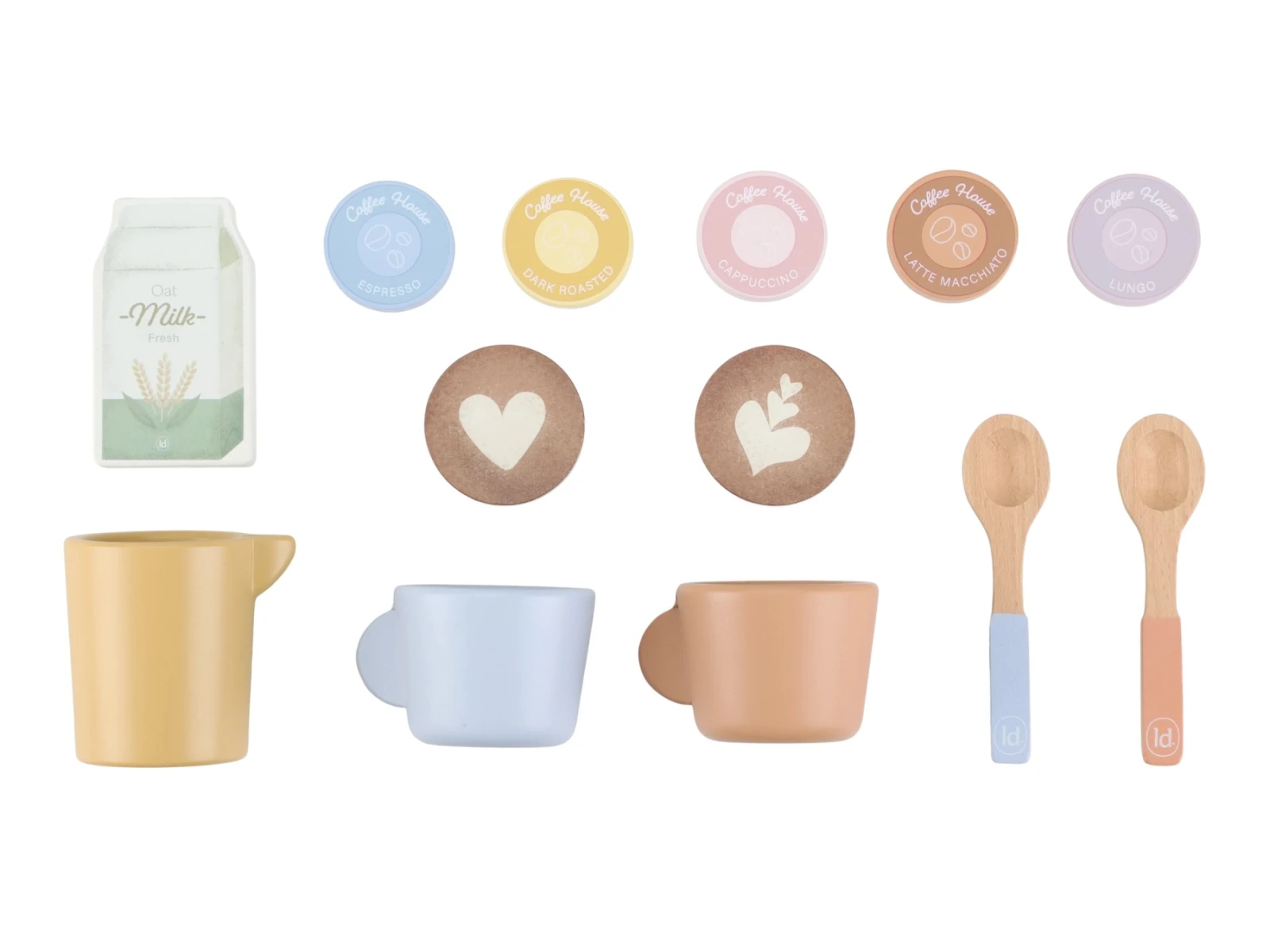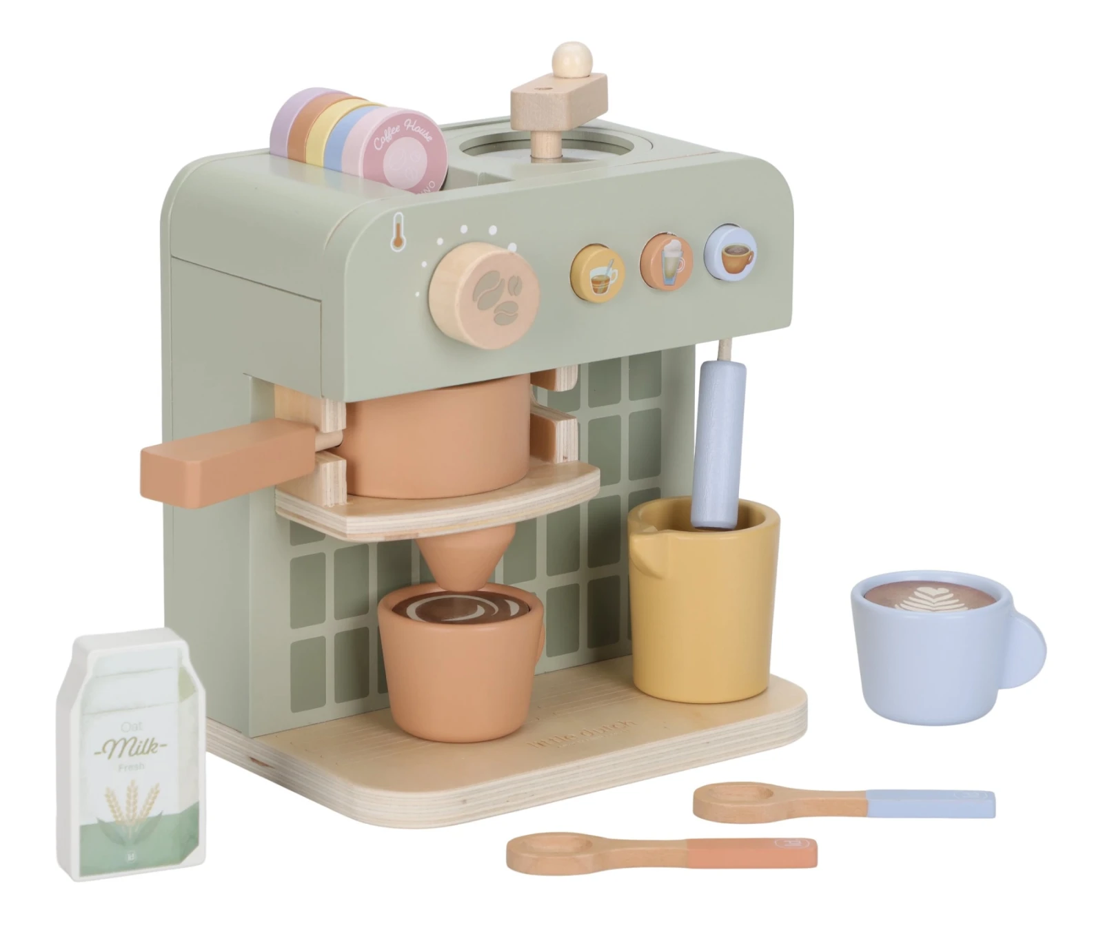 Na akú kávu máte dnes chuť? S týmto krásnym dreveným kávovarom sa z každého dieťaťa stane malý barista. Pre svojich hostí si môže namlieť kávu, vybrať kapsulu, naliať mlieko a ozdobiť nápoj podľa vlastnej fantázie.