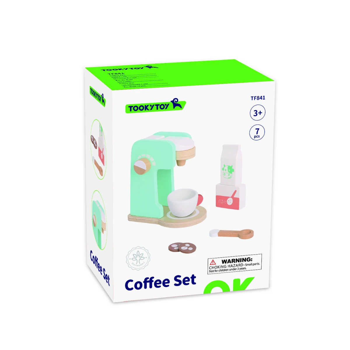 Krásna drevená súprava je skvelým doplnkom každej detskej kuchyne. Kávovar obsahuje bielu šálku, kávové zrná, mlieko a lyžičku na miešanie.