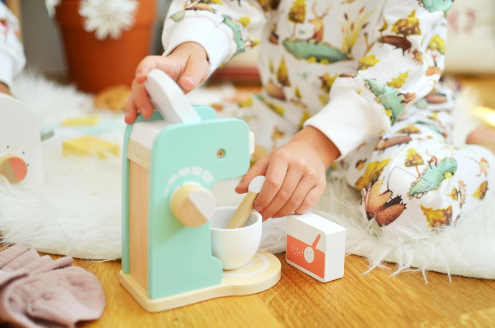 Nechajte si uvariť skvelú kávičku! Krásna drevená súprava je skvelým doplnkom do každej detskej kuchynky.