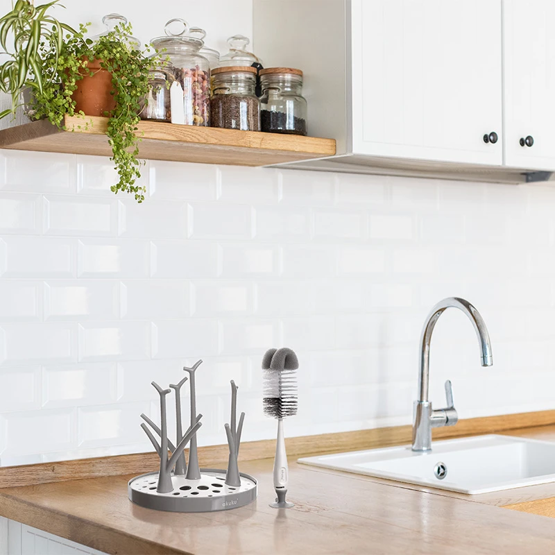 Kefa na fľaše s hubkou a prísavkou - sivá Akuku