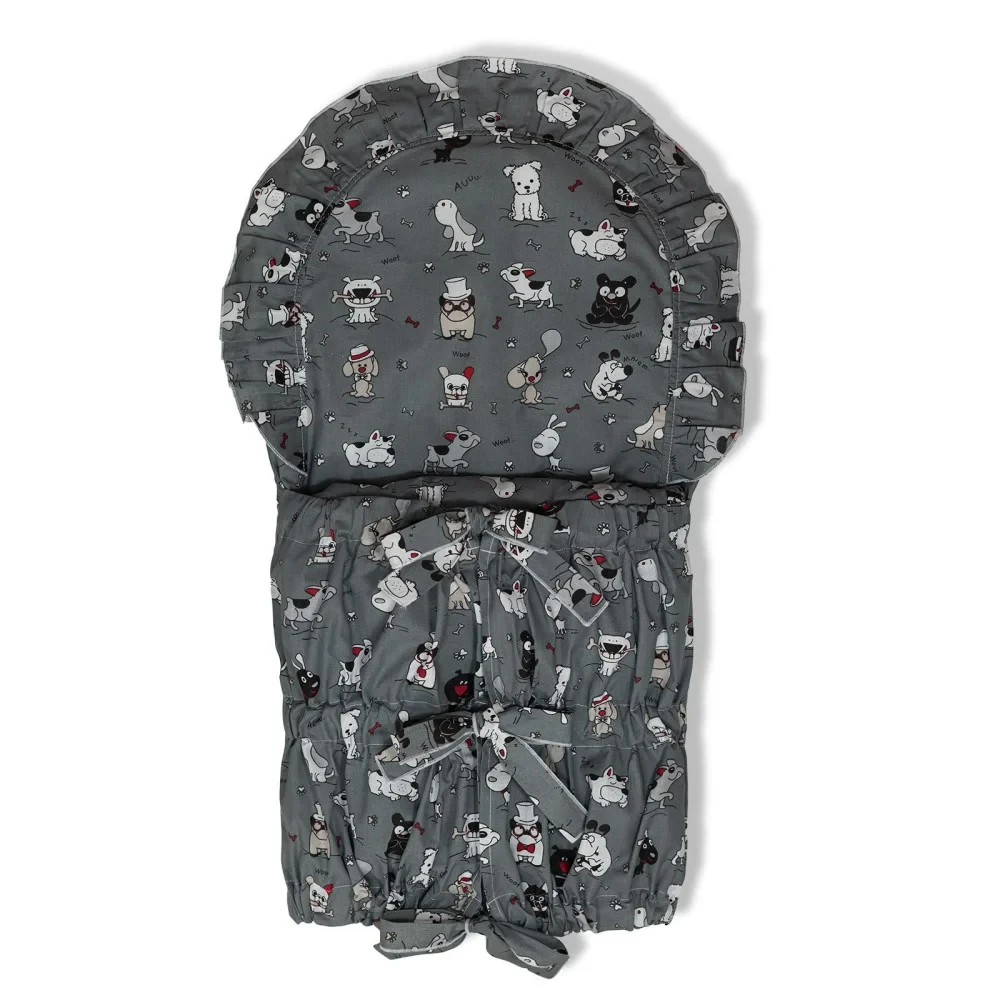 Materiál: Vonkajšia aj vnútorná strana: 100% bavlnené plátno s roztomilou potlačou veselých psíkov v šedivej farbe.
