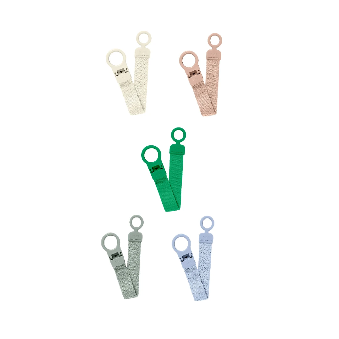 Je kompatibilný so všetkými cumlíkmi BIBS a väčšinou ďalších značiek. Vďaka širokej ponuke farieb ho navyše ľahko zladíte s cumlíkmi alebo podbradníkmi BIBS.