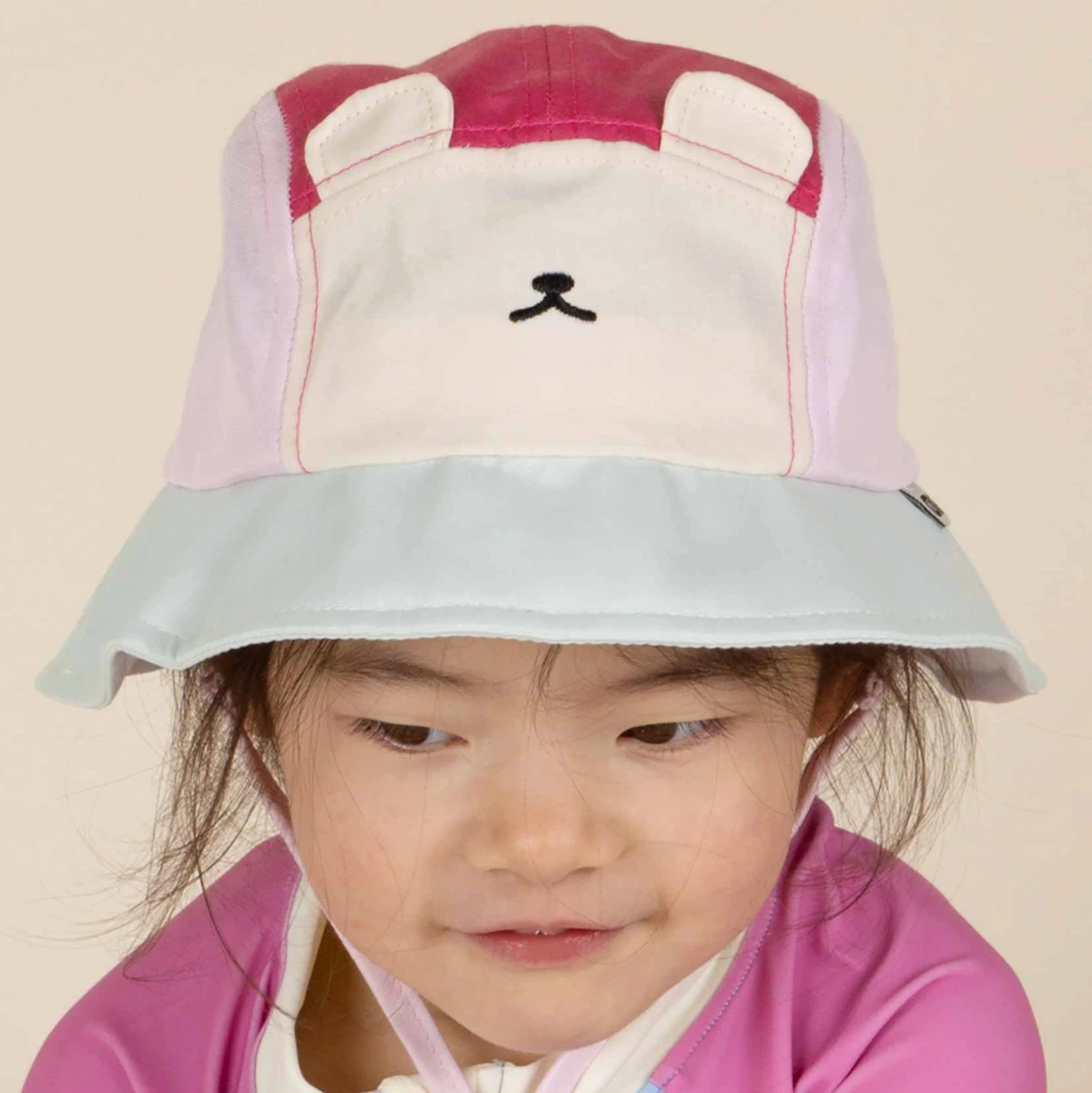 Najvyšší index UV ochrany UPF 50+ (blokuje až 98% UVA a UVB lúčov). 100% recyklovaný polyester s certifikáciou GRS (Global Recycled Standard). Hravé detaily v podobe zvieracích ušiek, nosíka či kvietky. Nastaviteľná a odnímateľná šnúrka. Systém na pripevnenie gumičky slnečných okuliarov ku klobúčiku. Predĺžený okraj v zadnej časti na ochranu krku a uší.