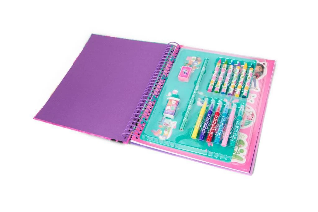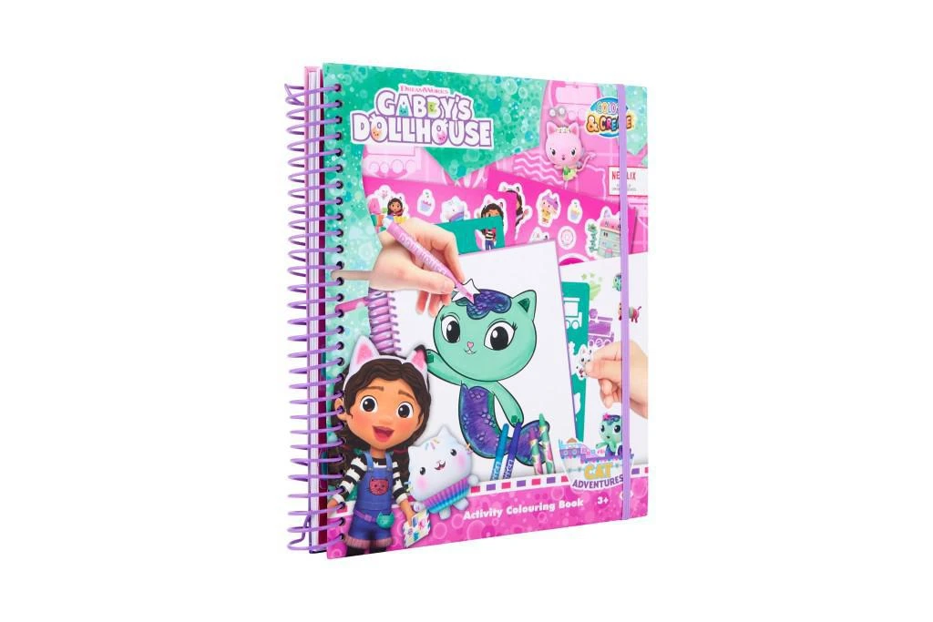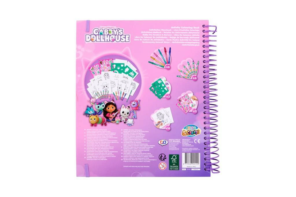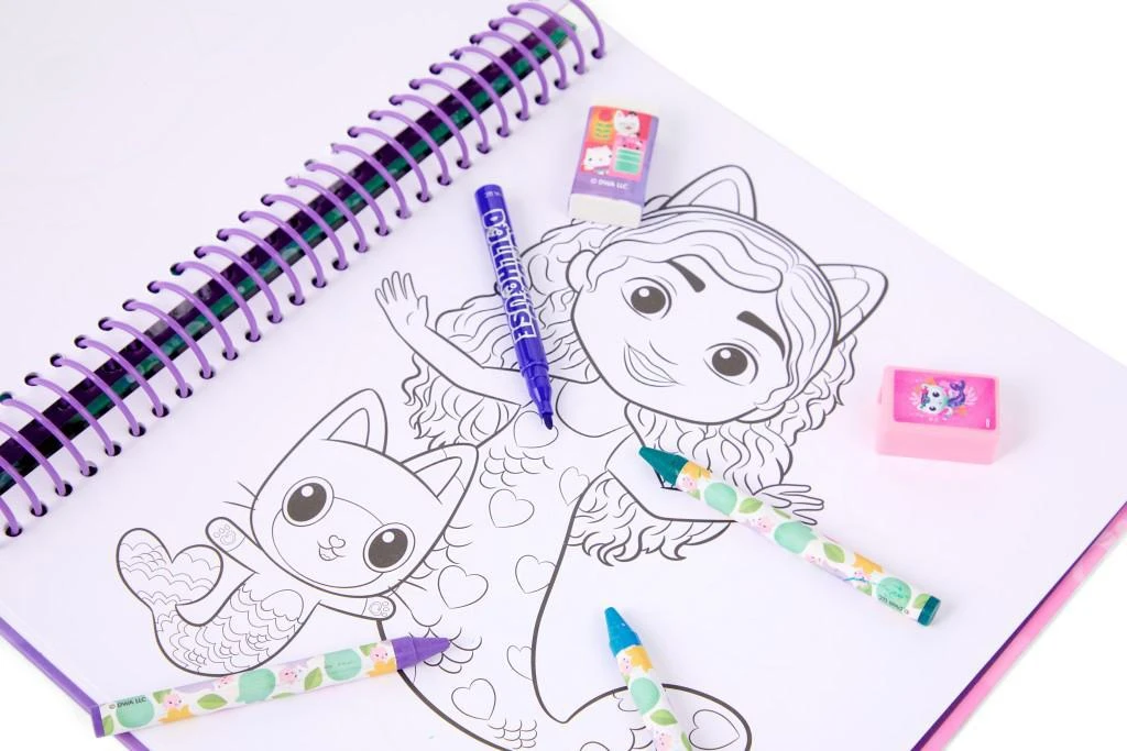 Zábavná kniha plná omaľovánok a kreatívnych aktivít inšpirovaných obľúbeným seriálom Gábinkin čarovný domček. , fixy a šablóny.