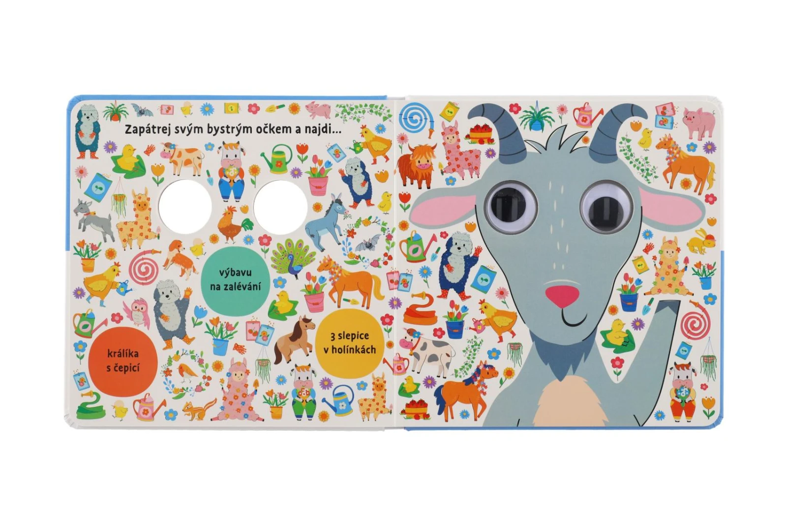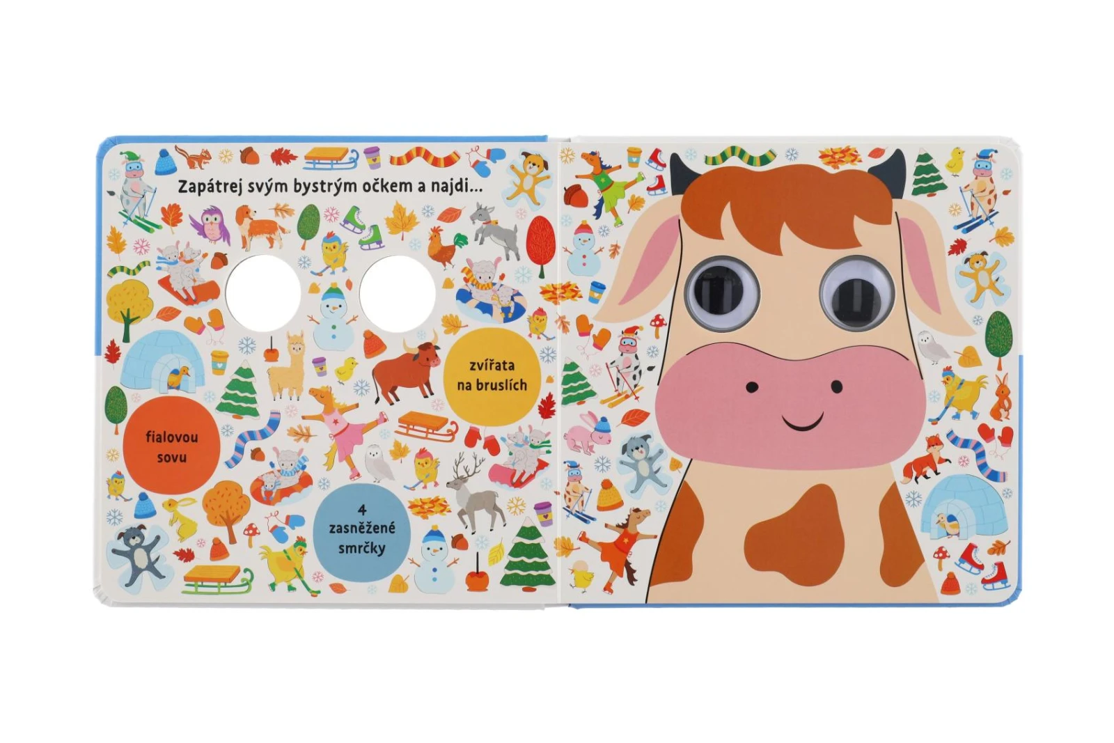 Hľadanie všetkým malým čitateľom spríjemnia zvieratká s pohyblivými očami, ktoré nájdu na každej stránke.
