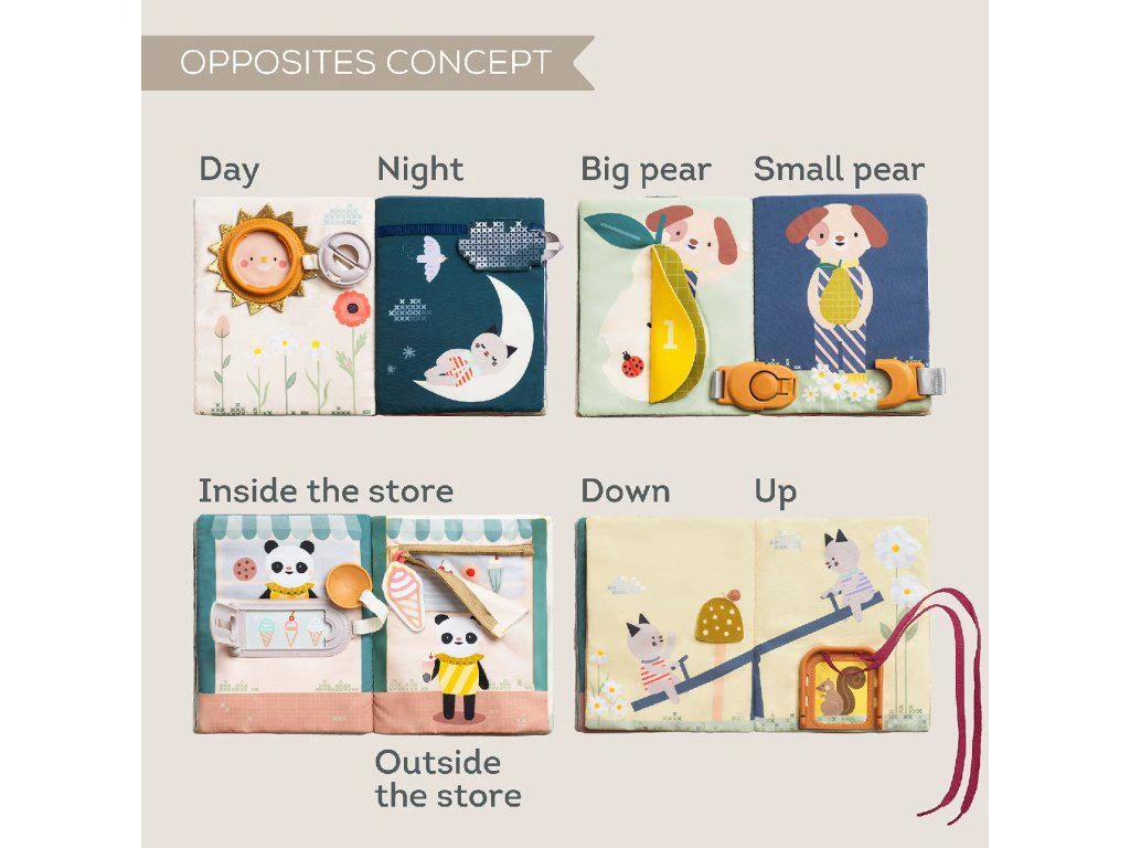 Objavovanie sveta protikladov nebolo nikdy zábavnejšie! Táto farebná a interaktívna kniha plná rôznorodých aktivít predstavuje deťom základné pojmy ako veľký a malý alebo deň a noc a pritom rozvíja jemnú motoriku, jazyk aj prvé matematické zručnosti.