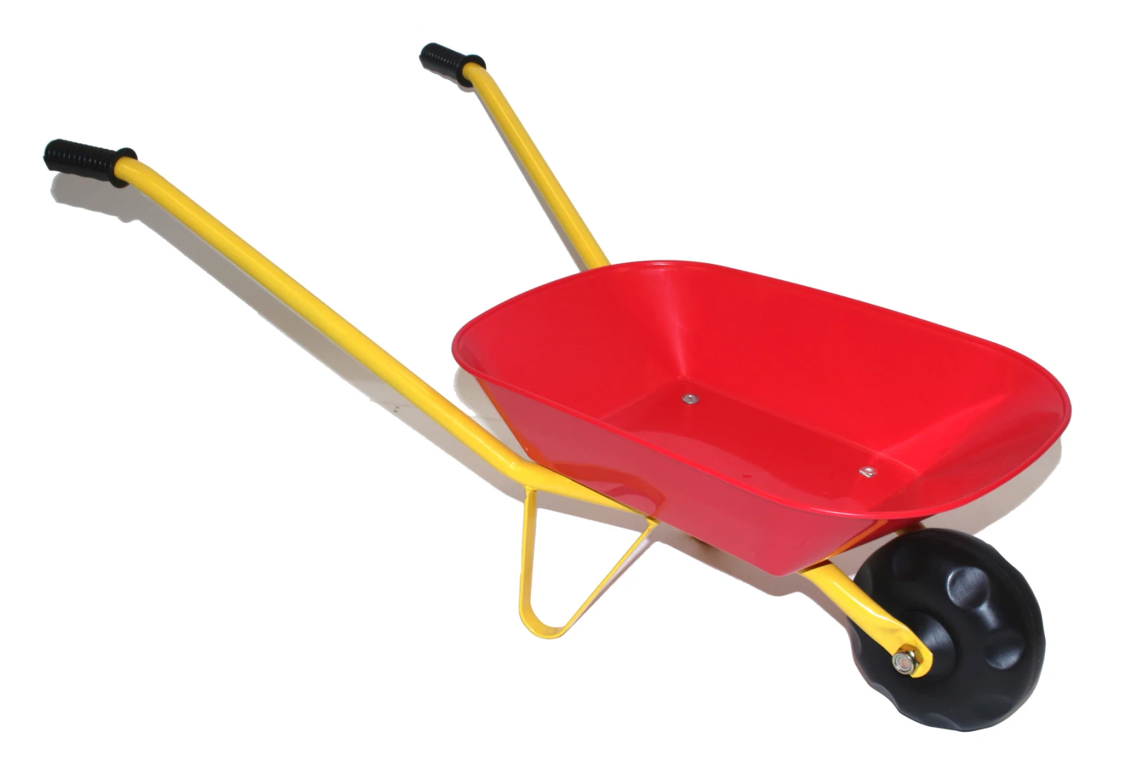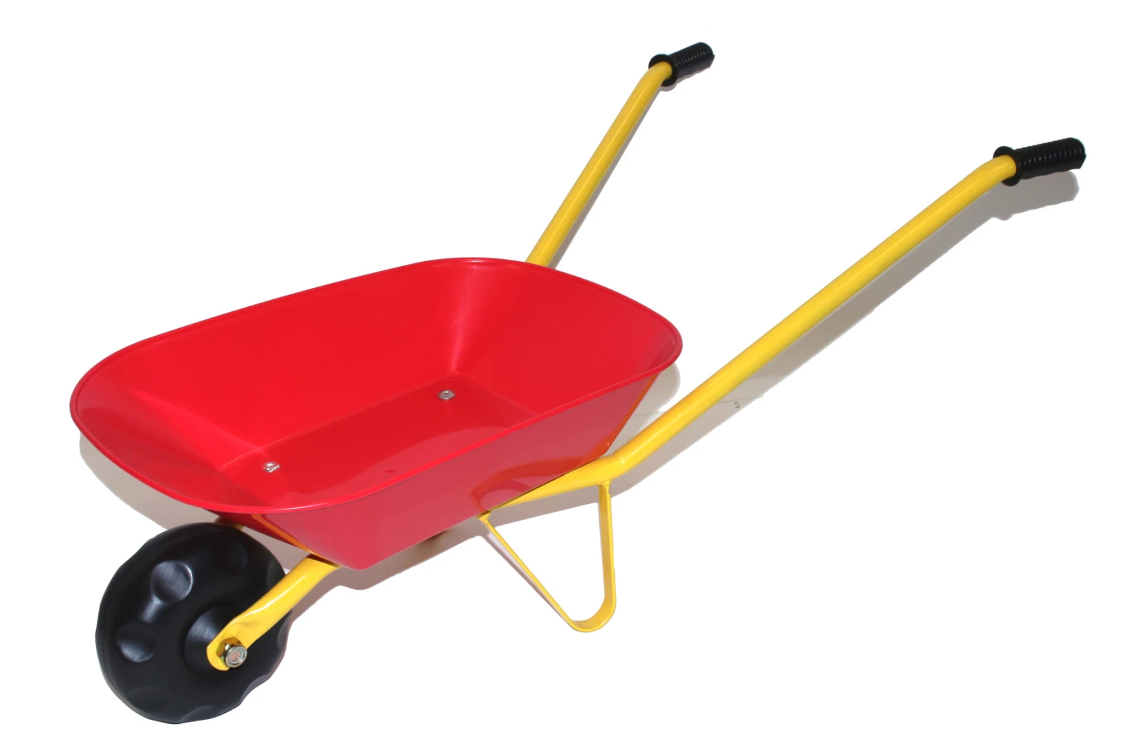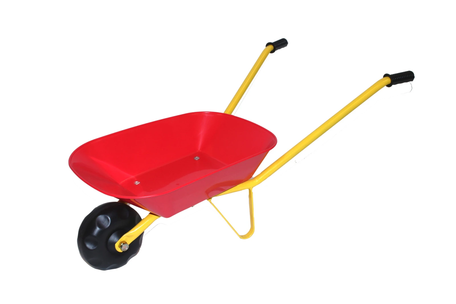Detské koliesko s plastovou korbičkou je vernou zmenšenou kópiou skutočného záhradného kolieska.