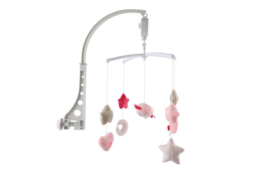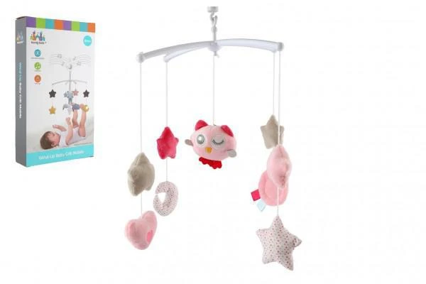 Kolotoč so sovičkou nad postieľku s naťahovacím hrajúcim strojčekom ružový