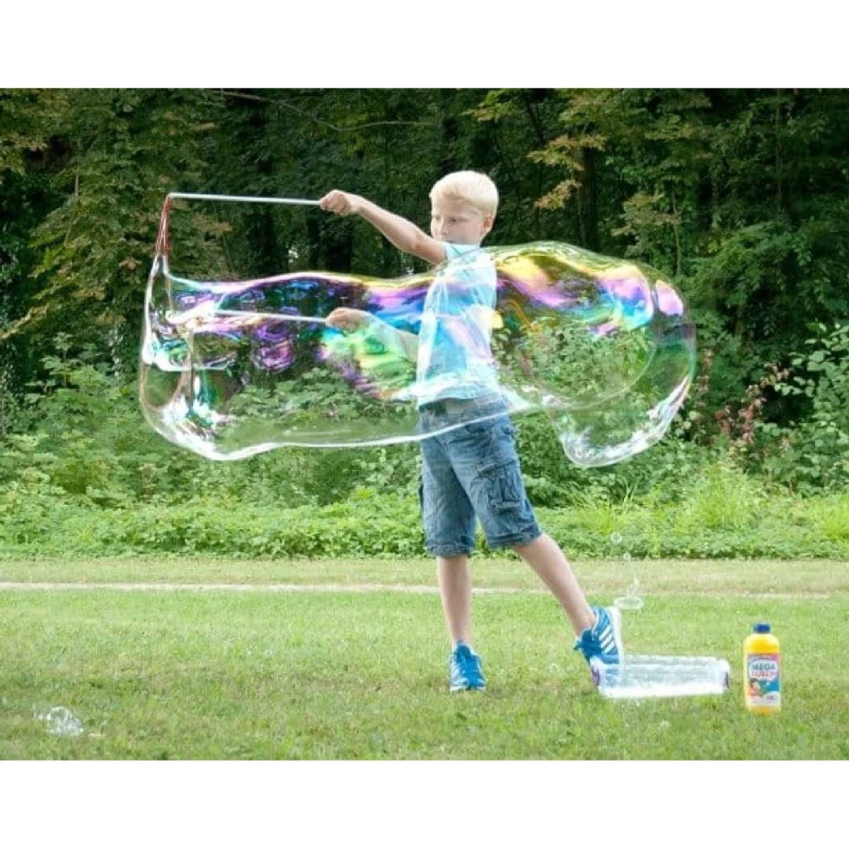 Bublifuk na veľké bubliny Megabublina - najlepšia zábava pre celú rodinu! 1 l koncentrátu na prípravu 4l dokonalej bublinovej kvapaliny! Napokon bublifuk, ktorý funguje a na ktorý sa môžete spoľahnúť. Bezpečný, netoxický, nerobí škvrny na oblečení.