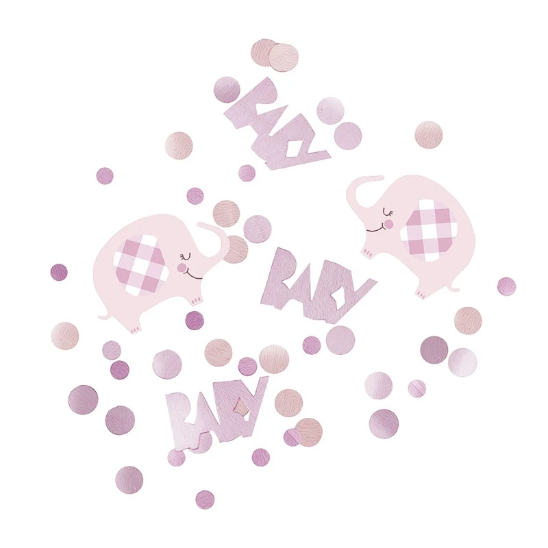 Roztomilé konfety s motívom nápisu „Baby“ a sloníkov v jemnej ružovej farbe sú ideálnou dekoráciou na baby shower, oslavu narodenia bábätka alebo prvé narodeniny. Skvele doplní slávnostnú výzdobu a vytvorí nežnú, hravú atmosféru.