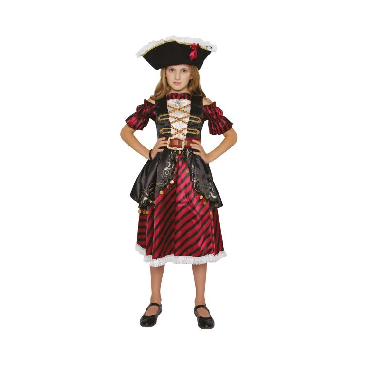 Dievčenský pirátsky kostým premení každú malú slečnu na odvážnu kapitánku, ktorá sa nebojí žiadneho dobrodružstva. Skvele sa hodí na tematické párty, karnevaly, oslavy aj domáce hranie, pri ktorom sa detská fantázia môže naplno rozvinúť. Pohodlný strih a ľahký materiál zaisťujú príjemné nosenie aj pri dlhšom šantení. Súčasťou balenia sú štýlové šaty a pirátsky klobúk, ktoré dohromady vytvárajú autentický pirátsky vzhľad. Kostým je dostupný vo veľkostiach pre deti 3–4 roky, 4–6 rokov a 7–9 rokov.