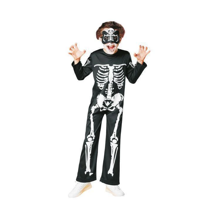Strašidelný kostým dopĺňa filcová maska s potlačou lebky, ktorá na hlave drží pomocou gumičky.