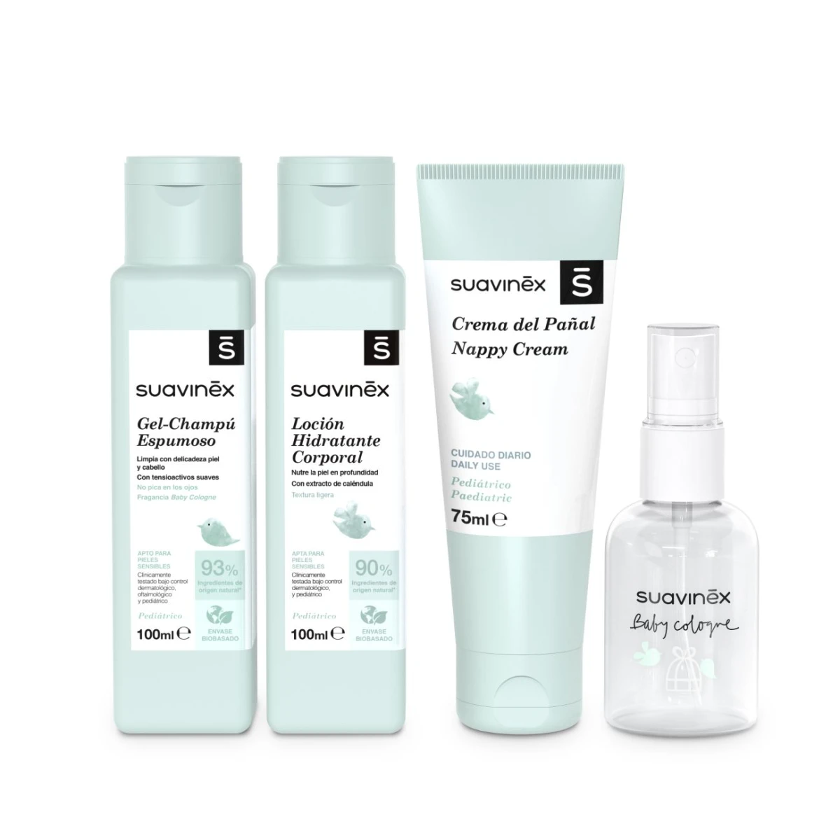 Kozmetická sada na cesty obsahuje samé nevyhnutnosti pre cesty s bábätkom. Nájdete v nej penový gél-šampón 100 ml, hydratačné telové mlieko 100 ml, krém na zapareniny 75 ml a detskú vôňu Baby Cologne 50 ml.