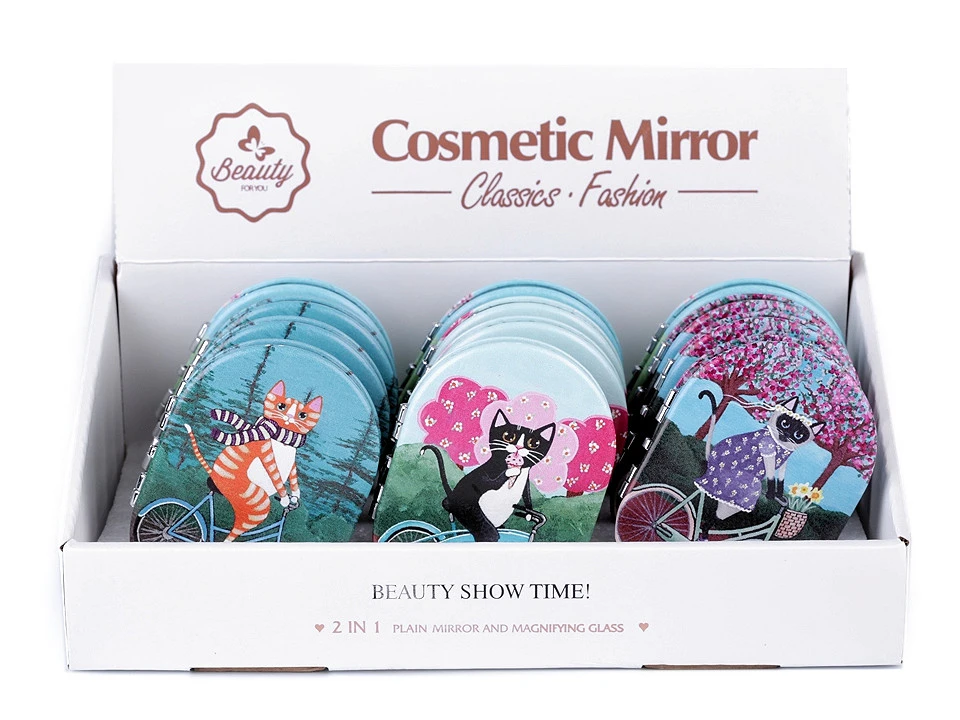 Má kvalitné spracovanie, je potiahnuté eko kožou. Vnútri sú 2 zrkadlá, jedno je zväčšovacie.