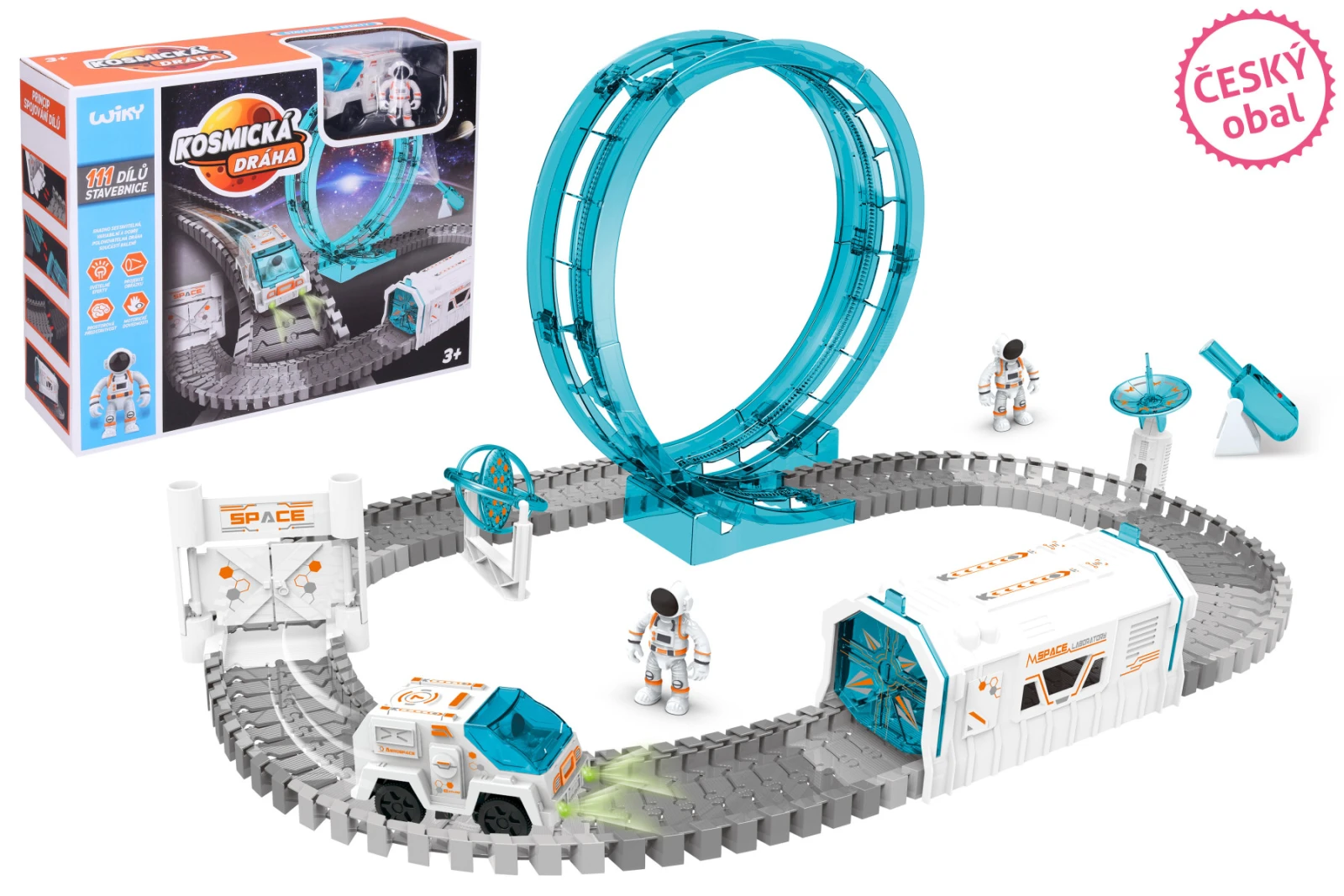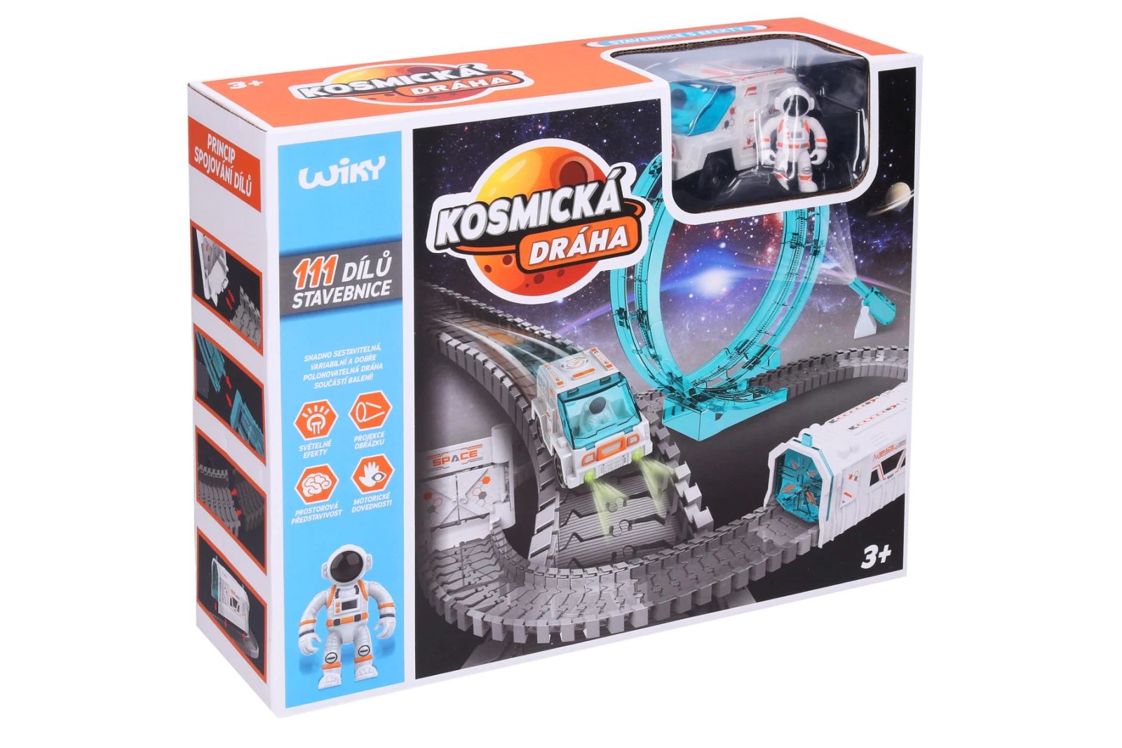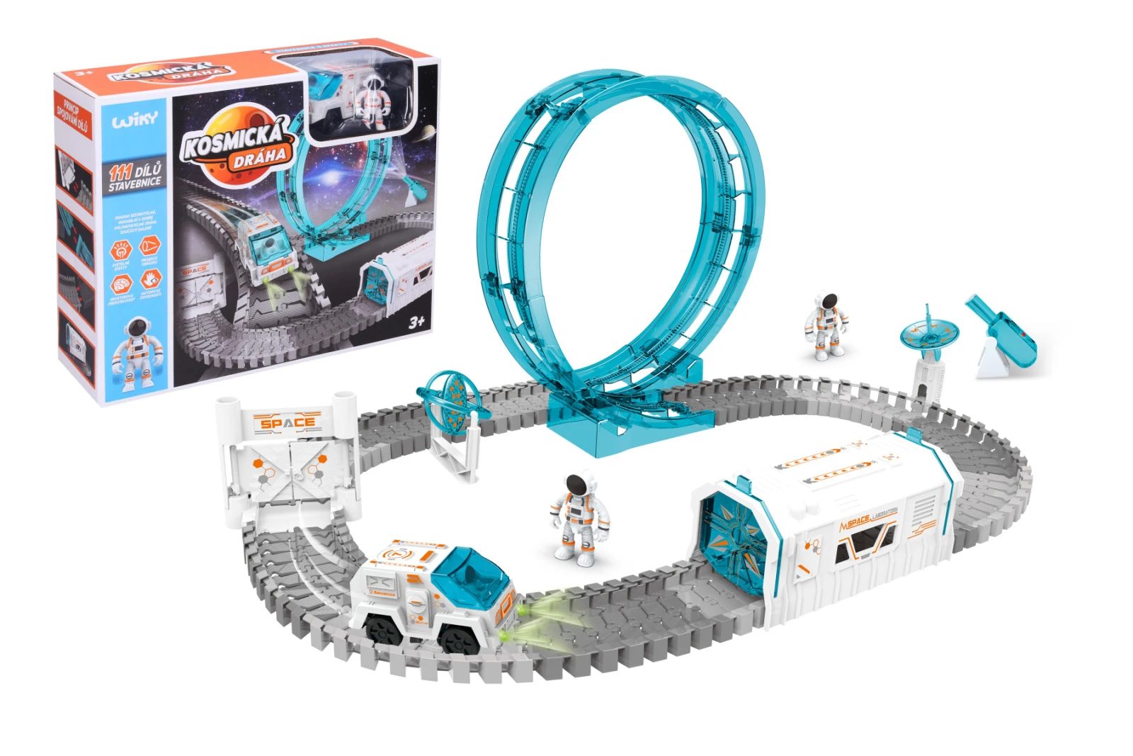 Kozmická dráha je interaktívna stavebnica, ktorá umožňuje deťom zostaviť vlastnú vesmírnu trasu pre guličky alebo vozítka. Jednotlivé diely do seba ľahko zapadajú, takže si deti môžu zakaždým vytvoriť inú dráhu a rozvíjať tak svoju predstavivosť aj logické myslenie.