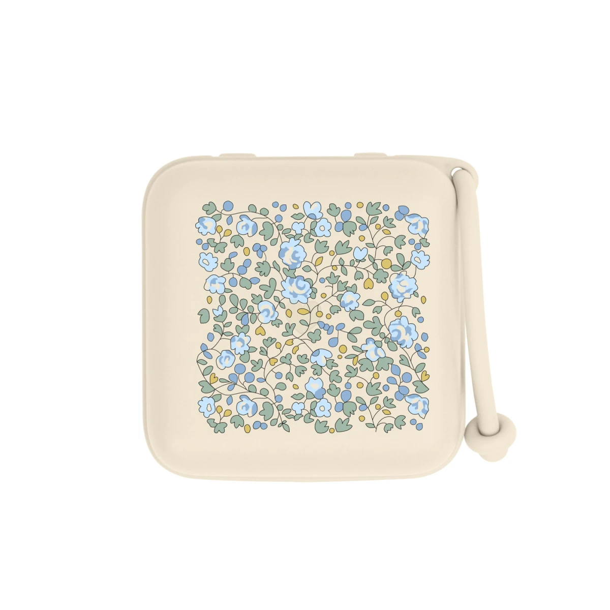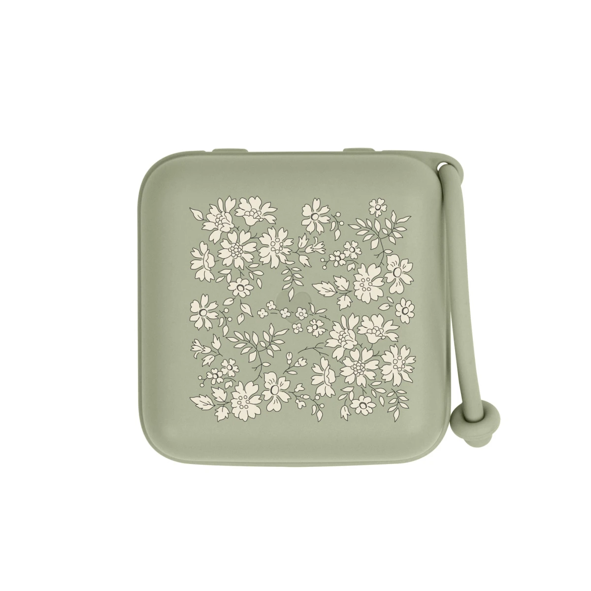 Vďaka silikónovému pútku je možné krabičku ľahko pripevniť na tašku, kočík, postieľku alebo autosedačku.
