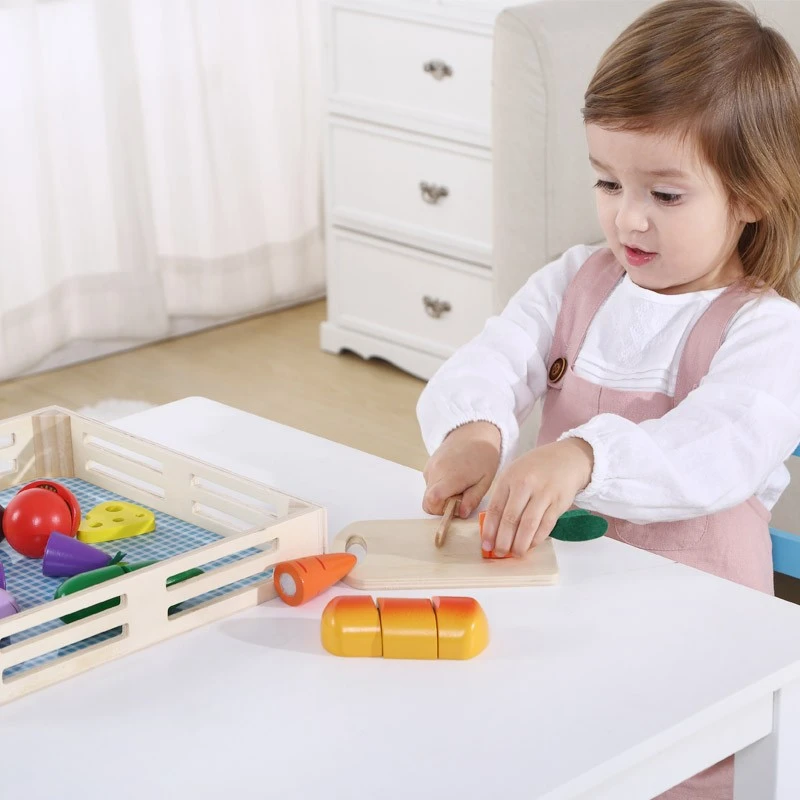 Krájanie Zelenina v debničke. Pripravíme zdravé jedlo! Drevené potraviny na suchý zips vhodné pre každého malého kuchára.