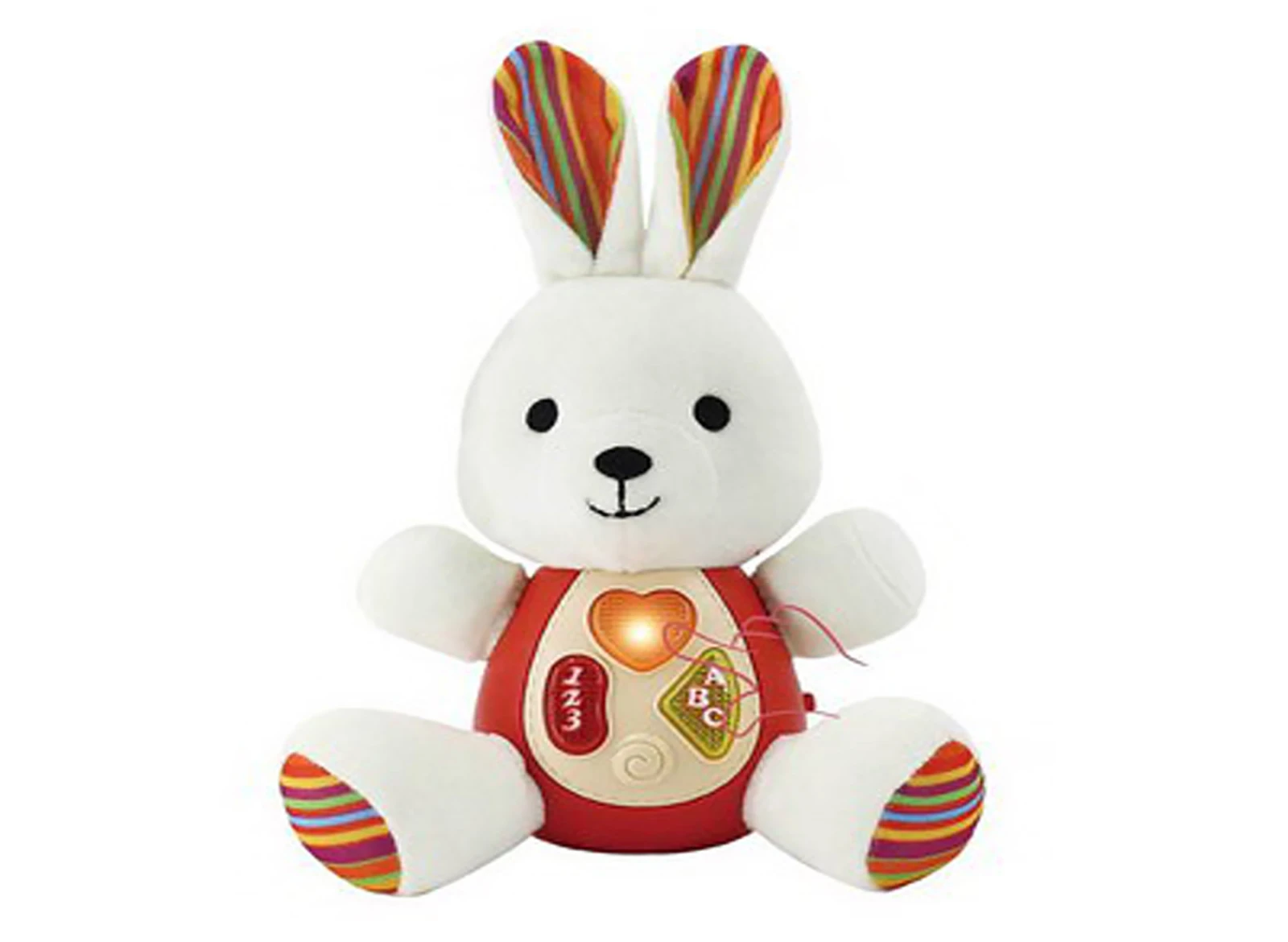 - Rozmery 22,5x11,5x18,2 cm. ON/OFF prepínač na strane králika. Plyšový s plastovým bruškom. Aktivácia tlačidlami na brušku - svetelné efekty, zvukové efekty a melódie.