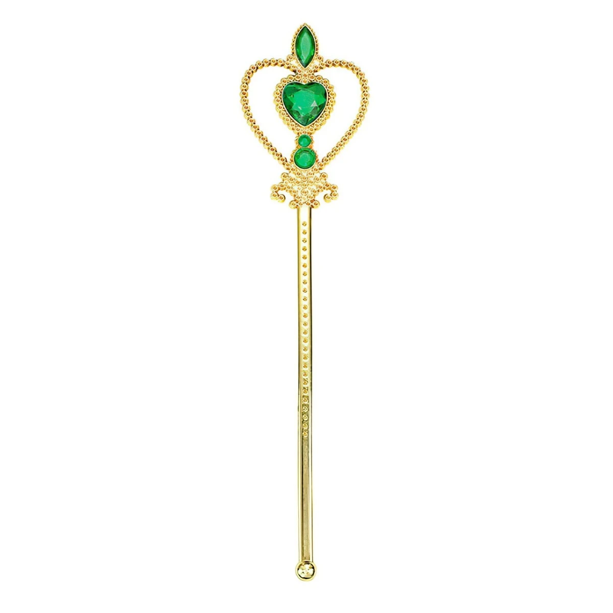 Obsah balenia zlatá korunka so smaragdovými kamienkami, univerzálna 1 pár rukavíc, dĺžka 25 cm žezlo, dĺžka cca 30 cm.