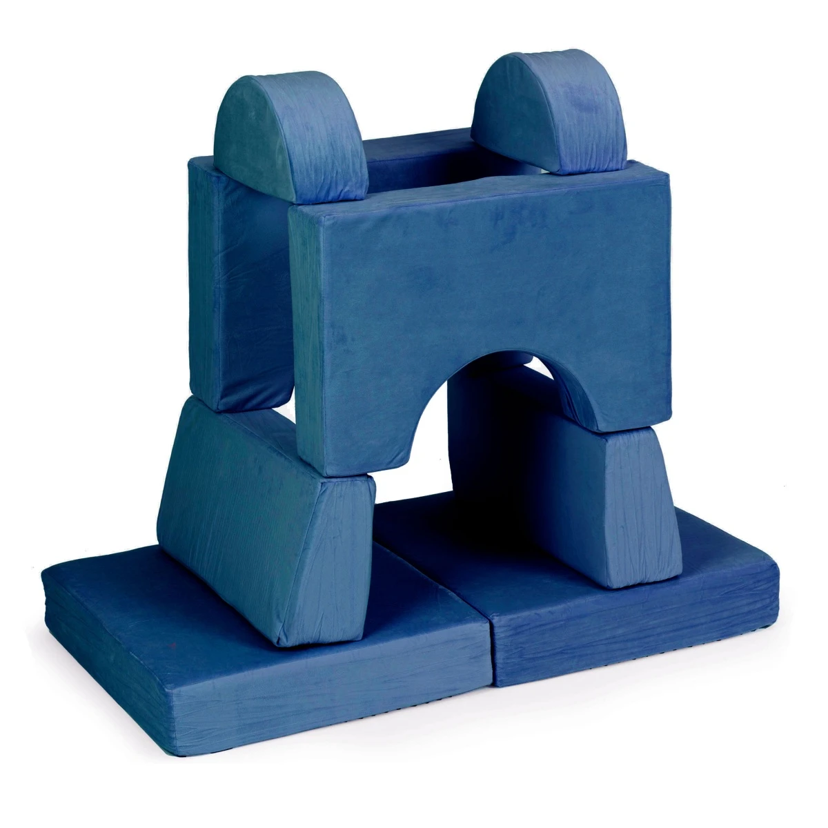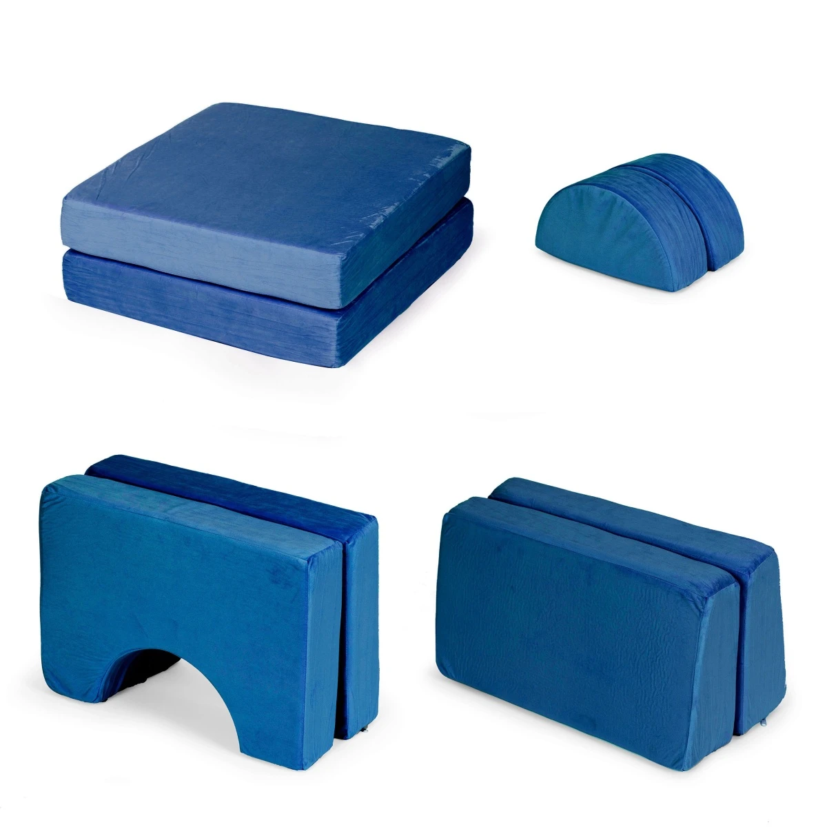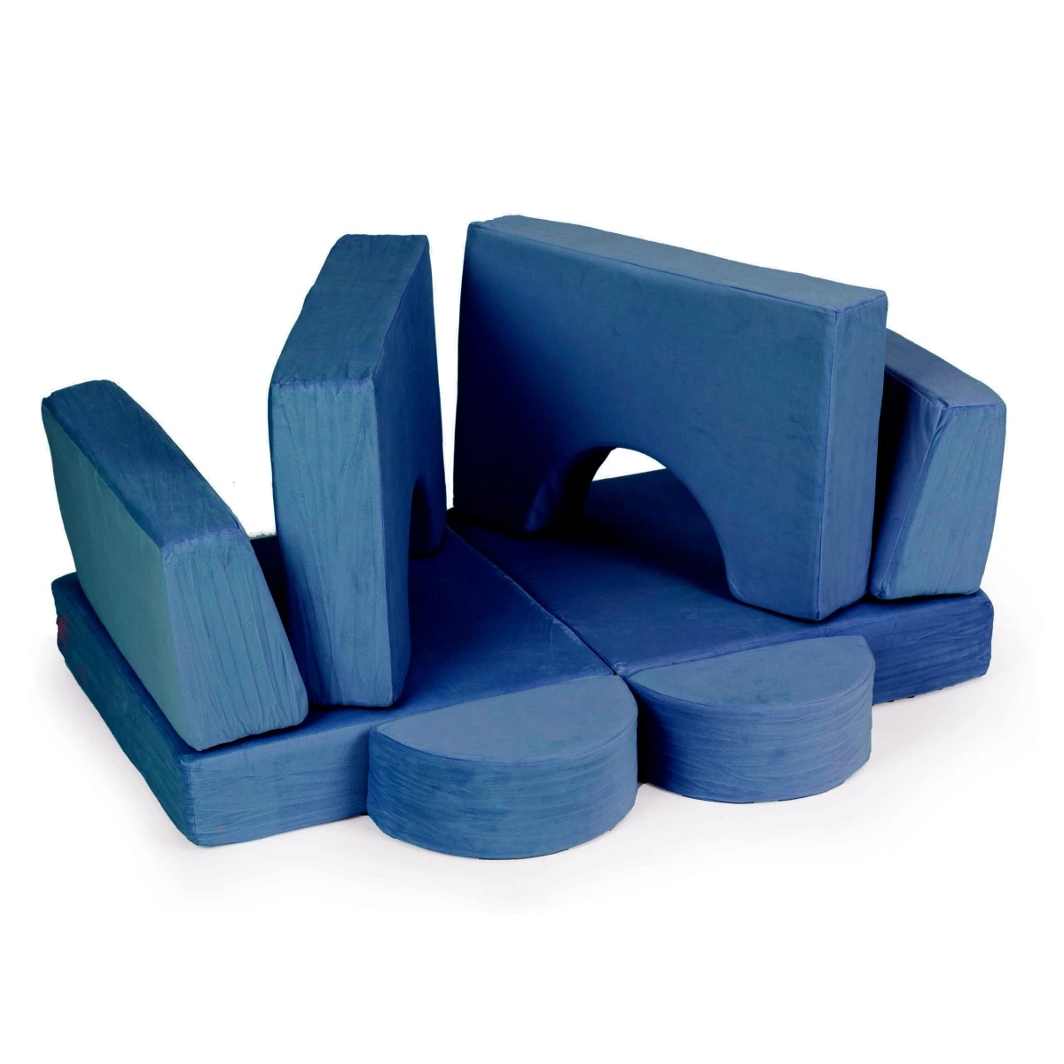 Kreatívna detská pohovka z mäkkých vankúšov - skladací modulárny set 8 dielov - tm. modrá