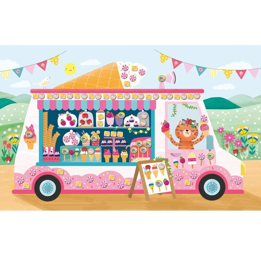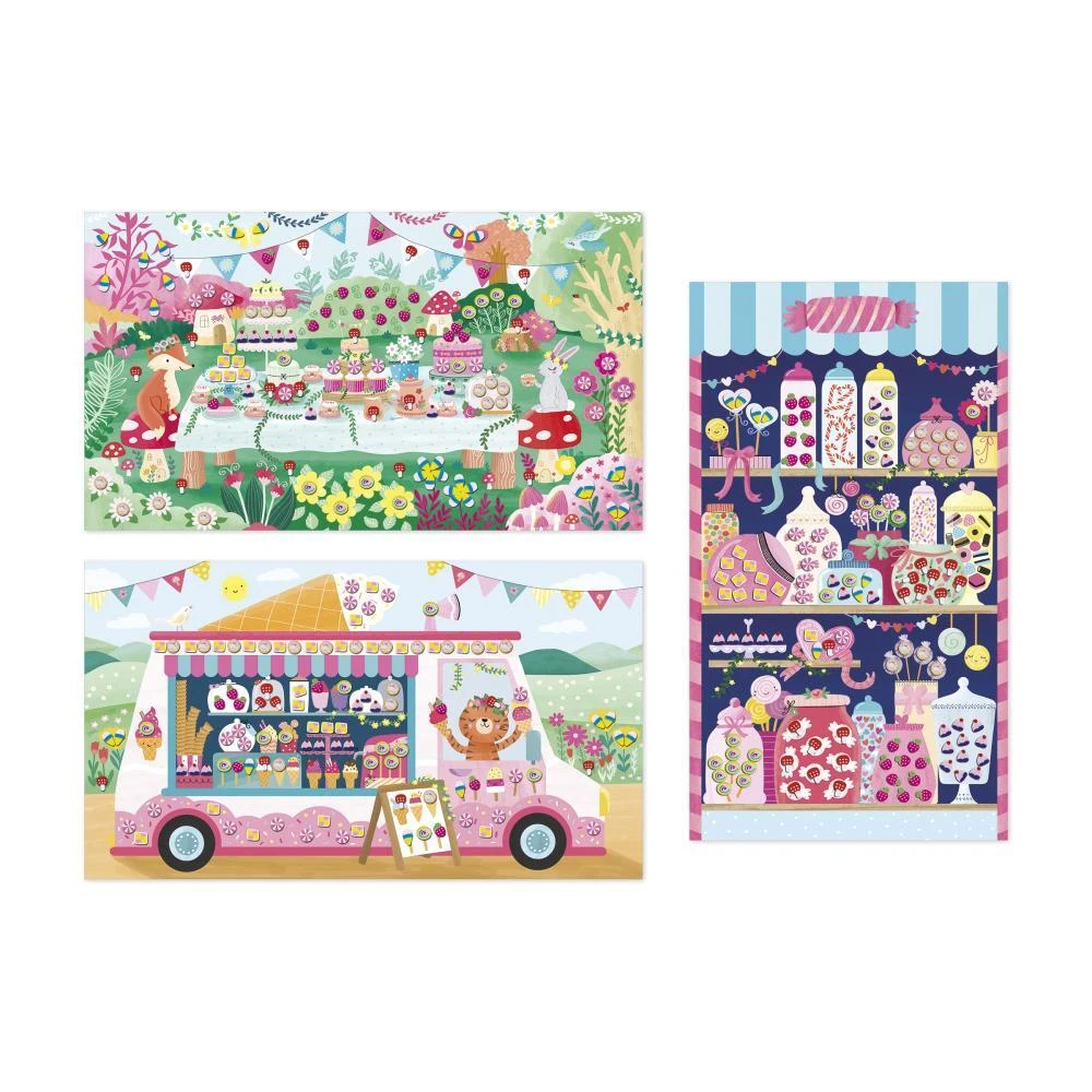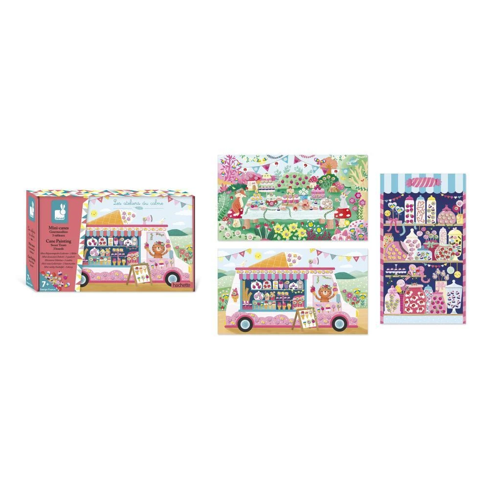 V tejto kreatívnej sade sú zahrnuté 3 nálepky, 370 mini tyčiniek v 8 rôznych modeloch a 1 klip. Návod a modely na reprodukciu sú vytlačené vo vnútri krabičky, takže malí kreatívci môžu svoje obrazy zdobiť samostatne. V ponuke týchto gurmánskych prostredí je lákavé okno cukrárne, zmrzlinové vozidlo (ale nielen) a banket v srdci lesa v čase čaju: deti pridávajú na scénu cukríky a sušienky a kúzlo lahôdok funguje! Ozdobenie každého obrazu navrhnutého v tejto kreatívnej sade na voľný čas bude trvať 15 minút na ilustrácii. Tu je sladká kreatívna súprava!