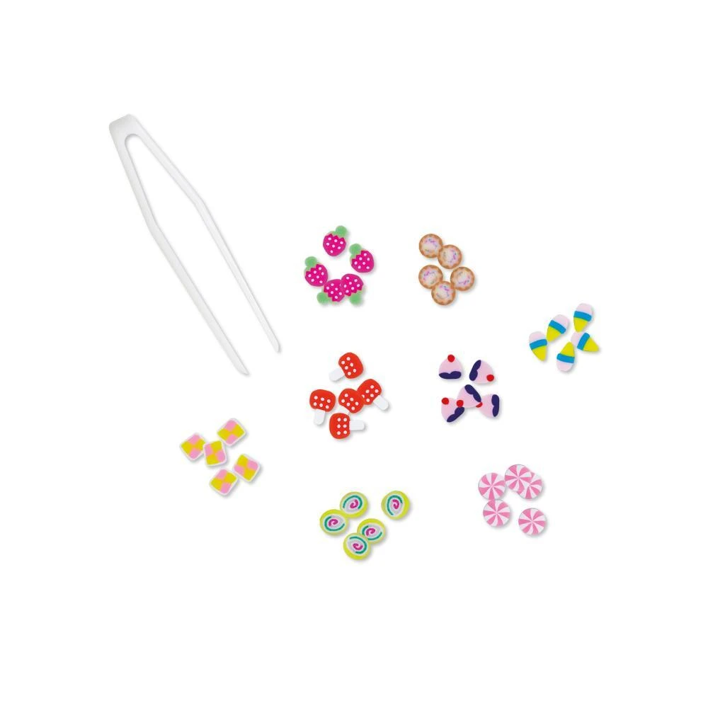 Pozor všetci gurmáni! Vďaka tejto kreatívnej krabičke si deti vo veku 7 a viac rokov vyzdobia 3 obrázky pomocou mini tyčiniek. Tieto malé plátky polymérovej hmoty v tvare ovocia alebo koláčikov sa prilepia na dosky, aby im dodali ešte väčšiu lahodnosť!