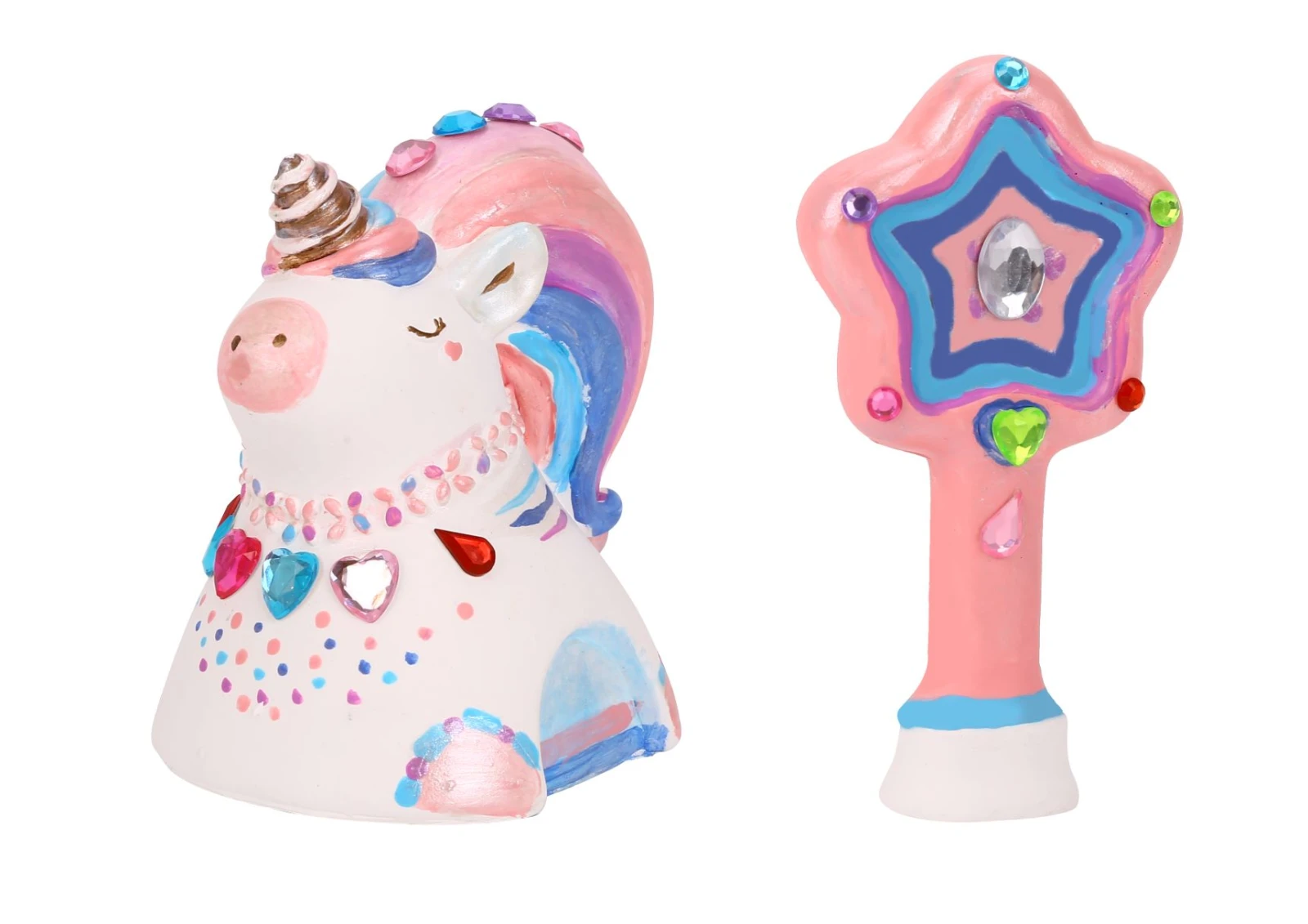 Nafarbi si svojho jednorožca! Kreatívna sada s maketou jednorožca a kúzelnej hviezdy. Obe makety je možné originálne nafarbiť štetcom šiestimi krásnymi farbami.
