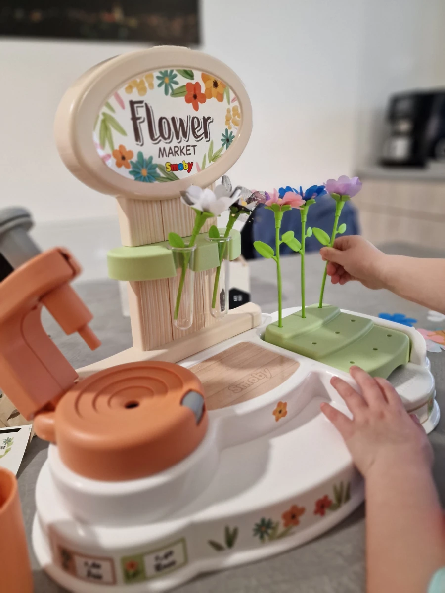 Veľkou výhodou je, že kvety je možné ľahko rozobrať a znovu použiť, takže hračka ponúka opakované využitie bez zbytočného odpadu. Zostavenie samotného kvetinárstva z kartónu je navyše zábavnou aktivitou aj pre rodičov, ktorí môžu deťom pomôcť vytvoriť vlastný „flower market“ a následne sa spoločne hrať.