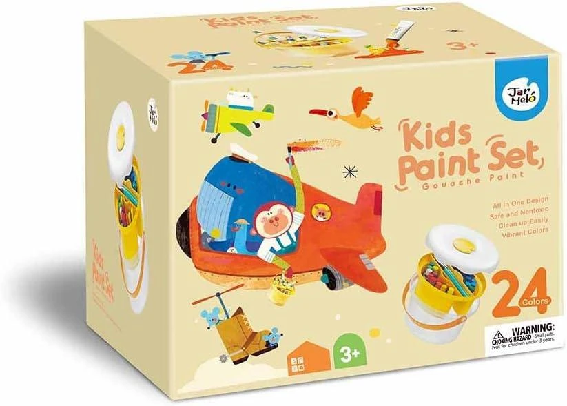 - 24 žiarivých, umývateľných kvasov farieb v oddelených téglikoch